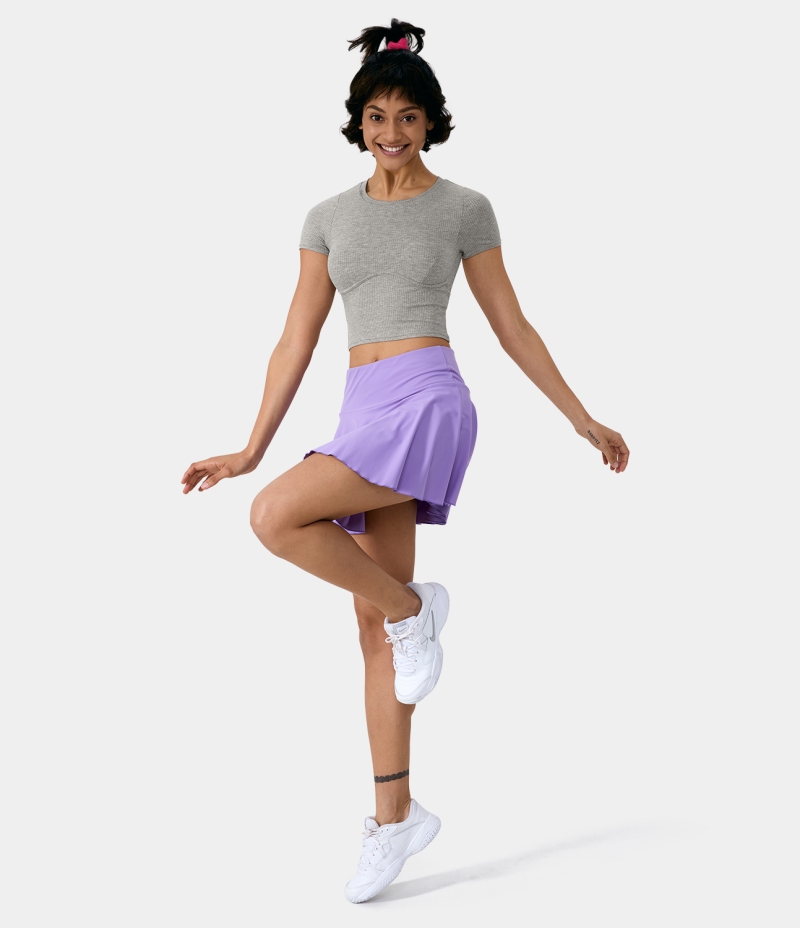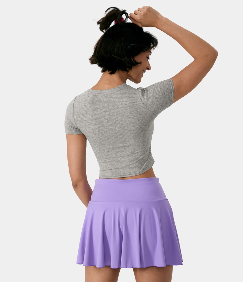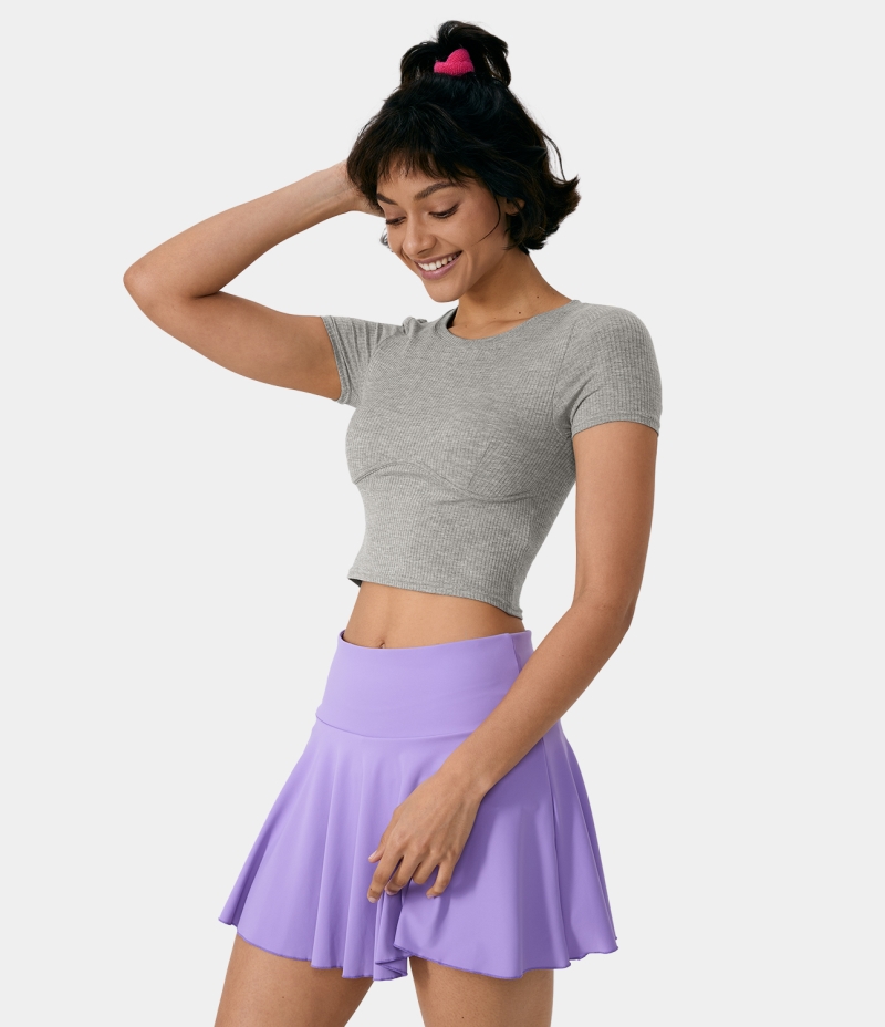 Halara Ribbed Knit Round Neck Short Sleeve Cropped T-Shirt Women's Tops Lunar Rock | ZSAWDCX-15