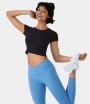 :: Halara Ribbed Knit Round Neck Short Sleeve Cropped T-Shirt Women's Tops Lunar Rock | ZSAWDCX-15