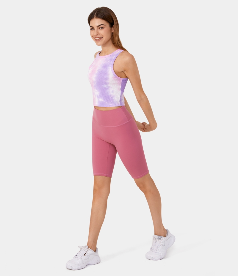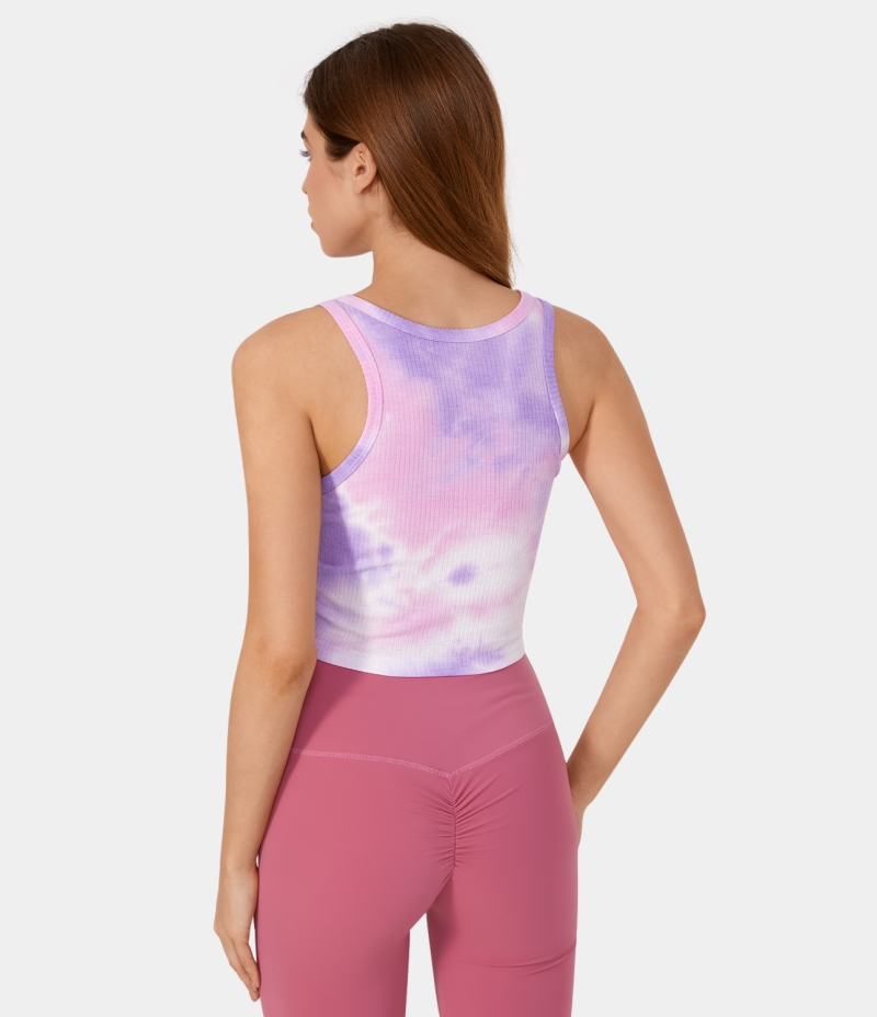 :: Halara Ribbed Knit Round Neck Tie Dye Cropped Yoga Tank Women's Tops Tie-dye Lilac Purple | WFHOLPS-05