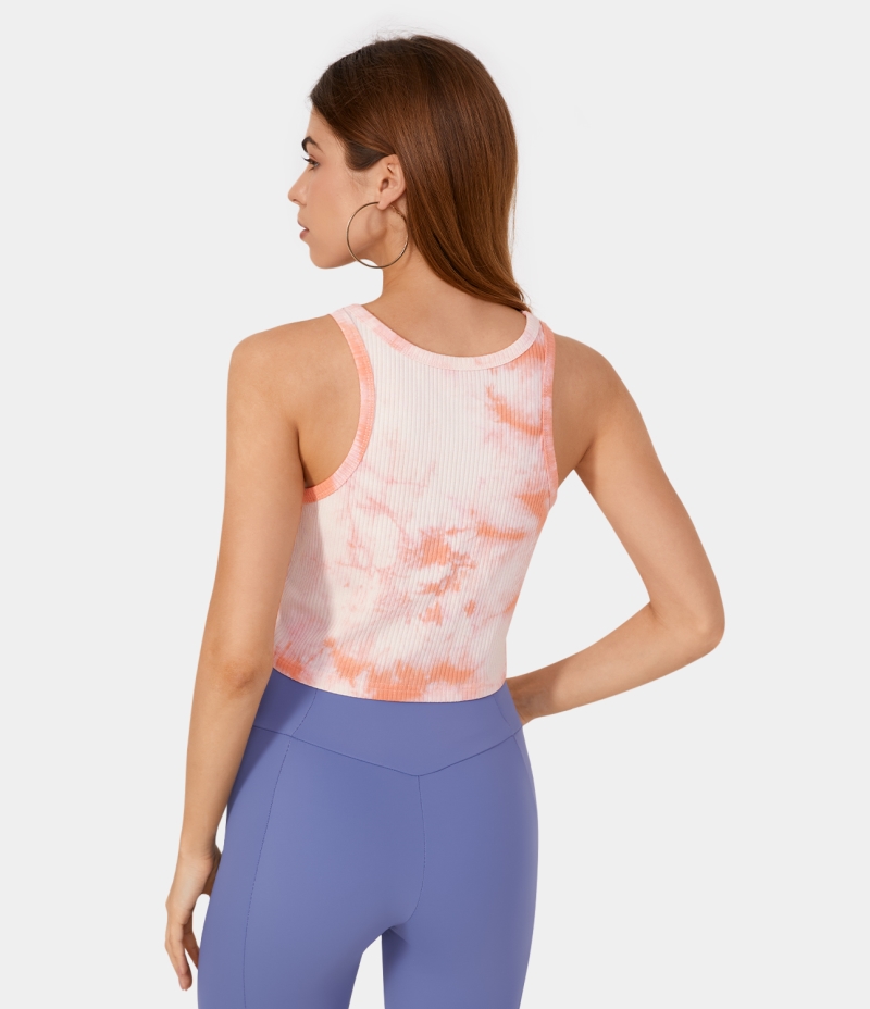 :: Halara Ribbed Knit Round Neck Tie Dye Cropped Yoga Tank Women's Tops Tie-dye Orange | ZDFHRQS-81
