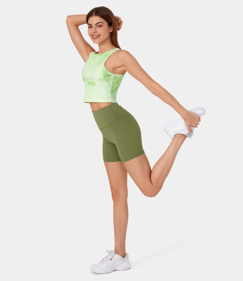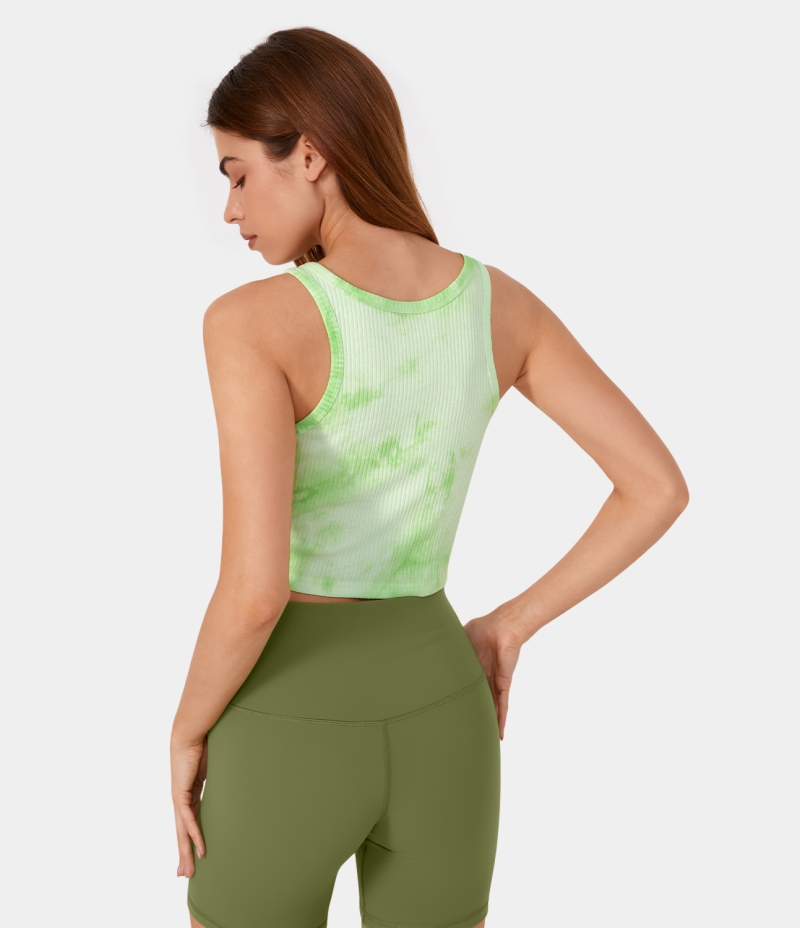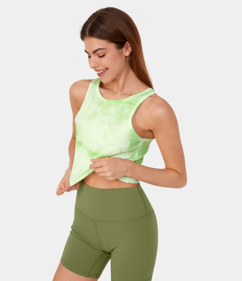 :: Halara Ribbed Knit Round Neck Tie Dye Cropped Yoga Tank Women's Tops Tie-dye Pale Green | YGBRPMS-89