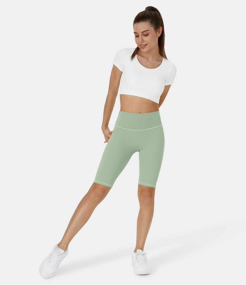 Halara Ribbed Knit Short Sleeve Cropped Yoga Sports Women's Tops White | UGMWRHB-09