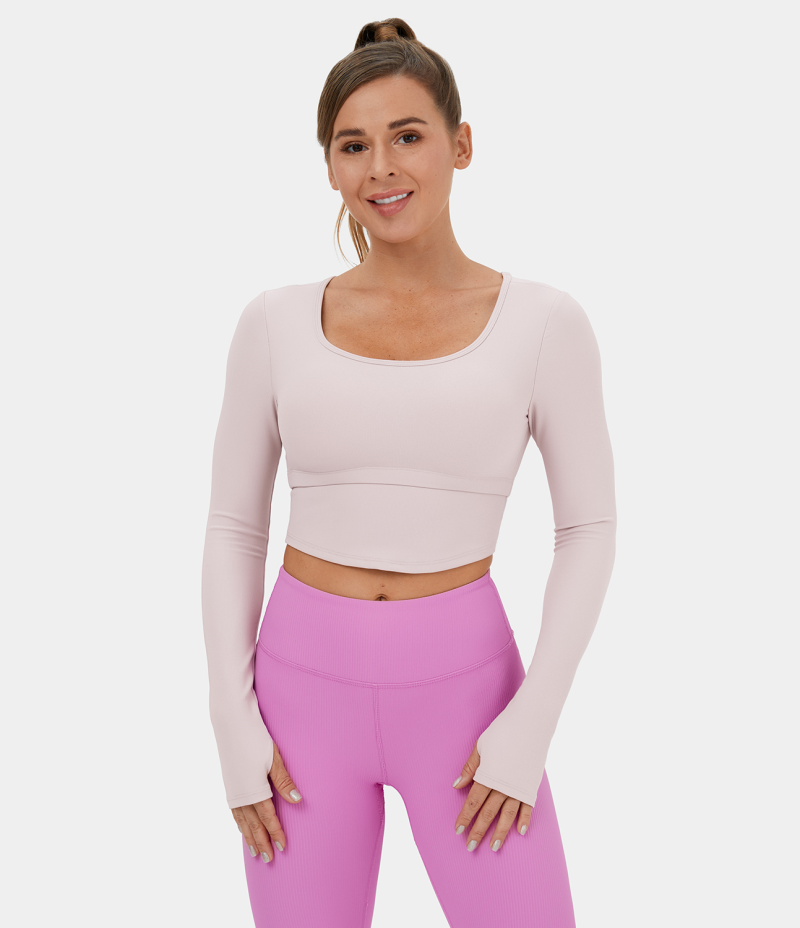 :: Halara Ribbed Knit Thumb Hole Asymmetric Hem Cropped Yoga Sports Women's Tops Lilac Ash | BFJQCPO-47