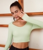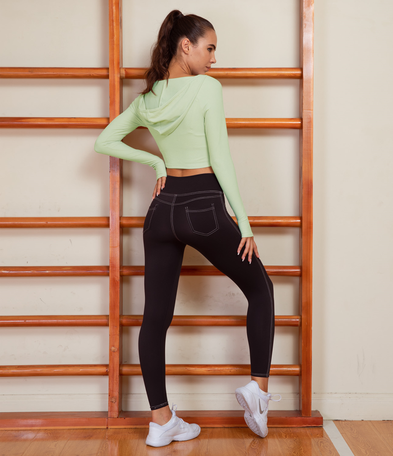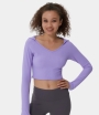 :: Halara Ribbed Knit V Neck Hooded Thumb Hole Cropped Sports Women's Tops Mist | QGFKEOP-82