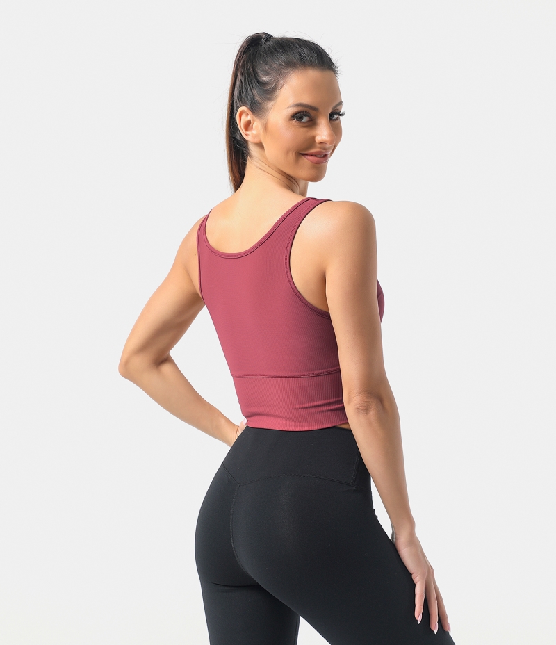 :: Halara Ribbed Knit Workout Cropped Tank-Front and Back Wearable Women's Tops Merlot Red | KCHYWBX-20