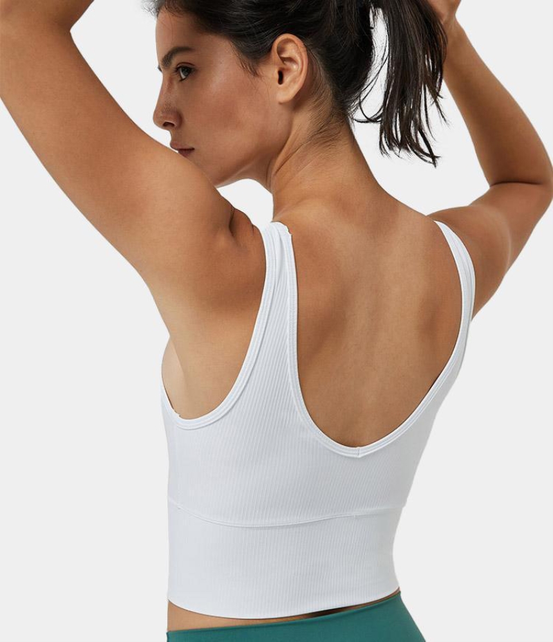 :: Halara Ribbed Knit Workout Cropped Tank-Front and Back Wearable Women's Tops White | EBACXFO-09