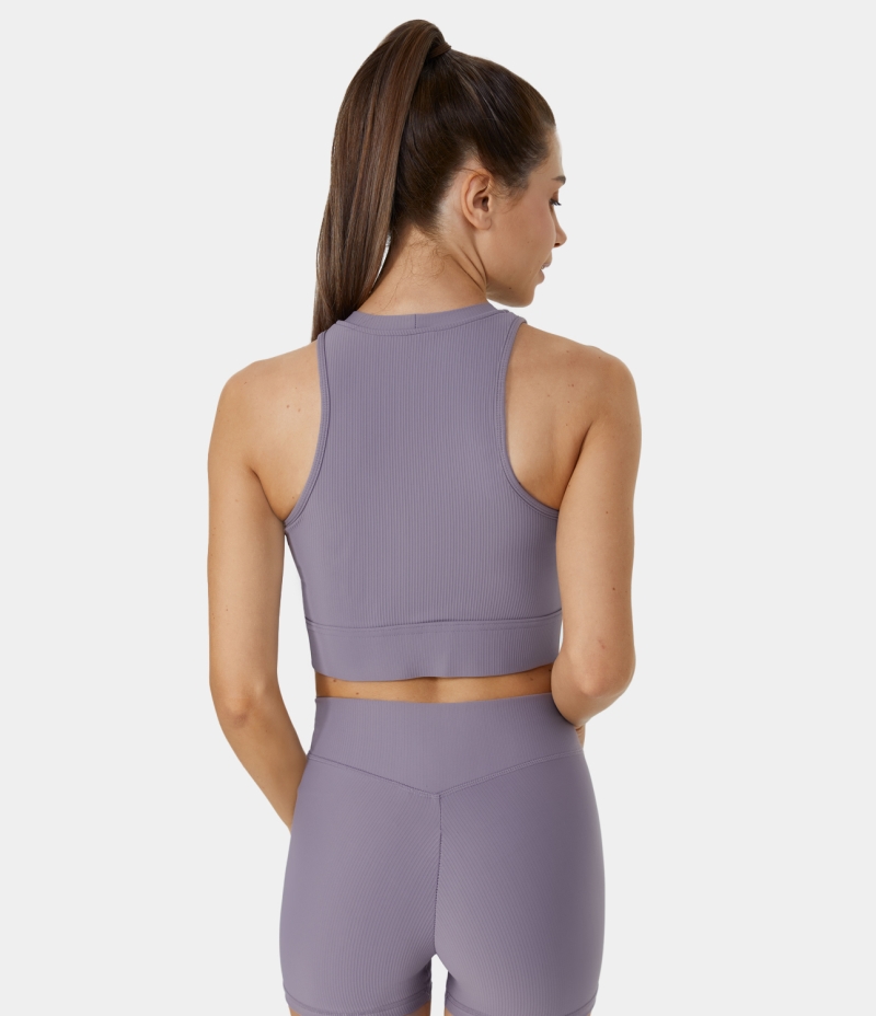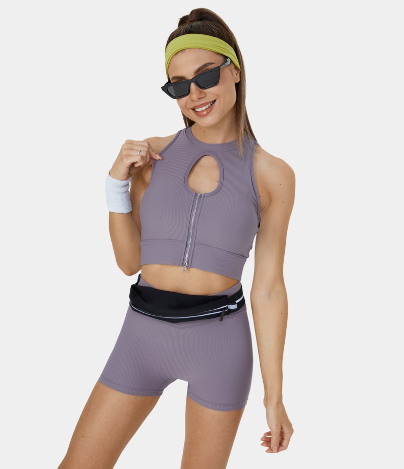 :: Halara Ribbed Knit Zip Front Cut Out Cropped Training Tank Women's Tops Dusk | HTRGUZB-65