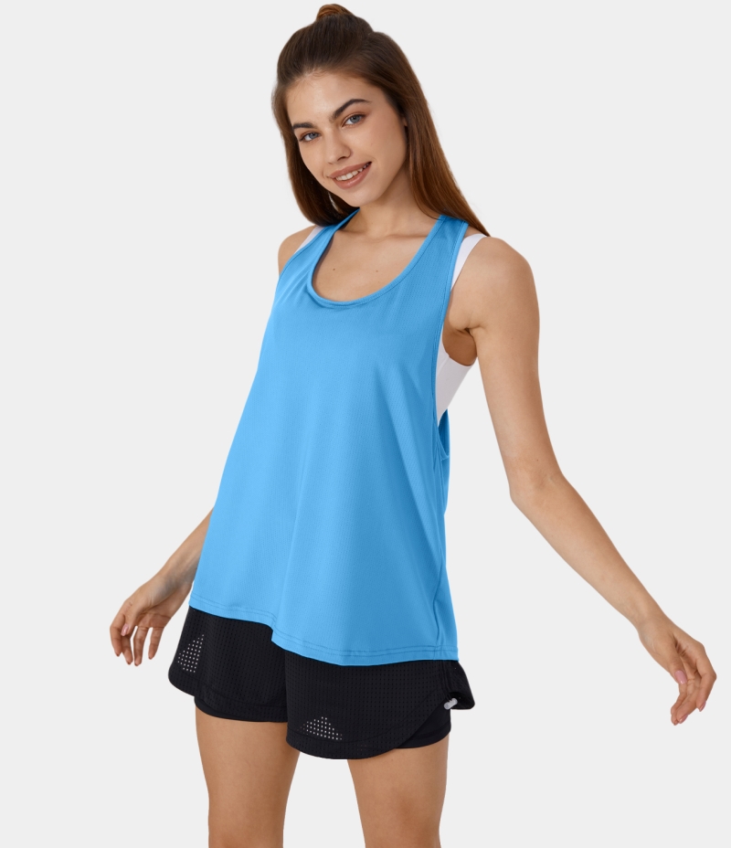 :: Halara Round Neck Backless Solid Yoga Tank Women's Tops Bright Blue | VAHXDQB-92
