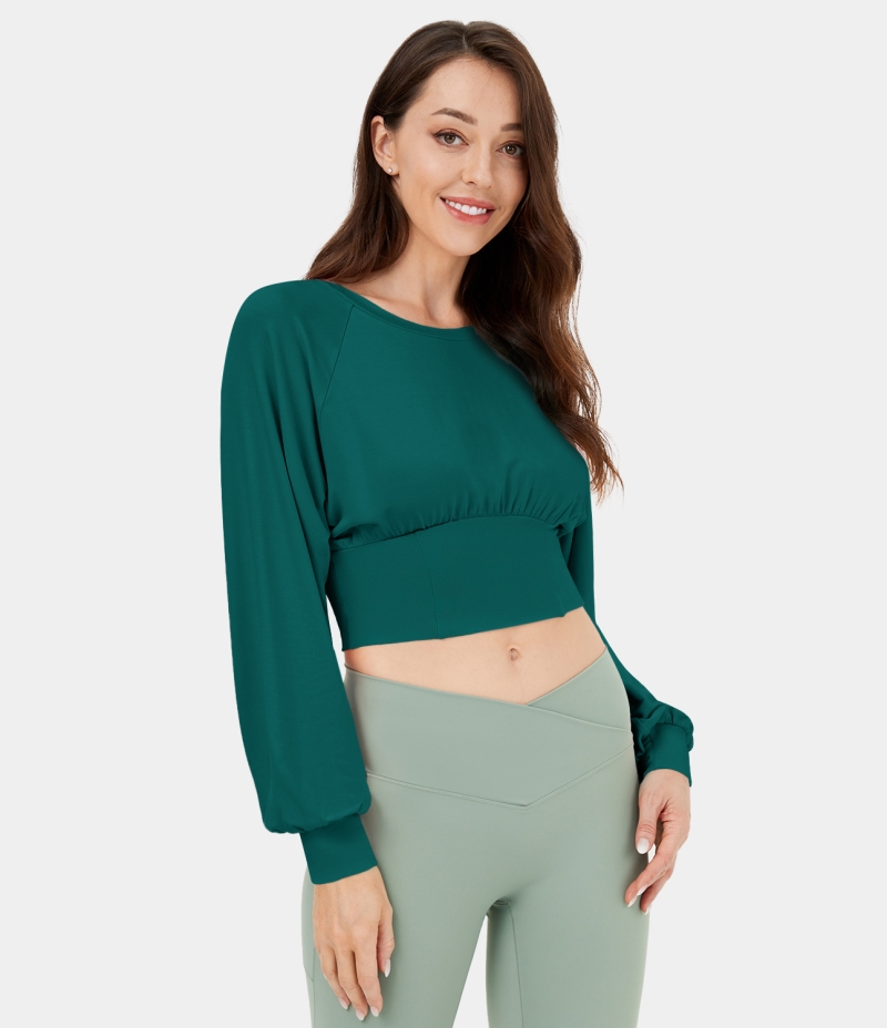 Halara Round Neck Batwing Sleeve Corset Cropped Casual Sweatshirt Women's Tops Everglade | WODYQIA-87