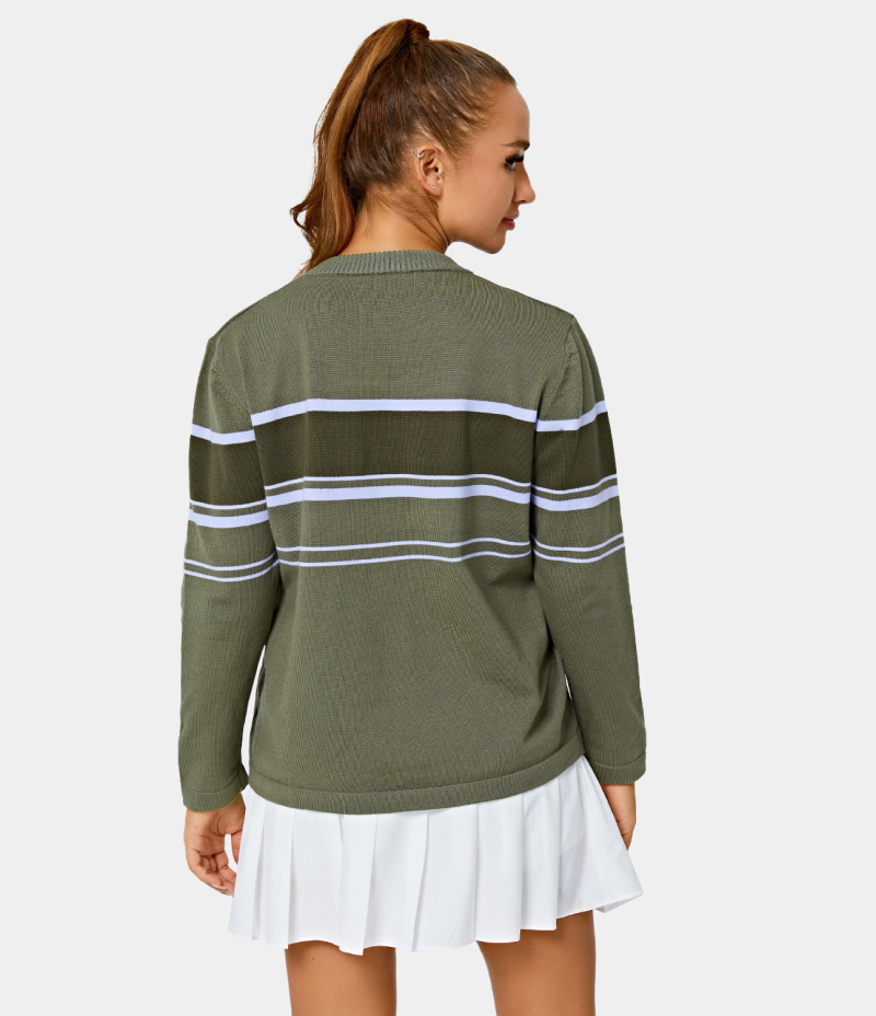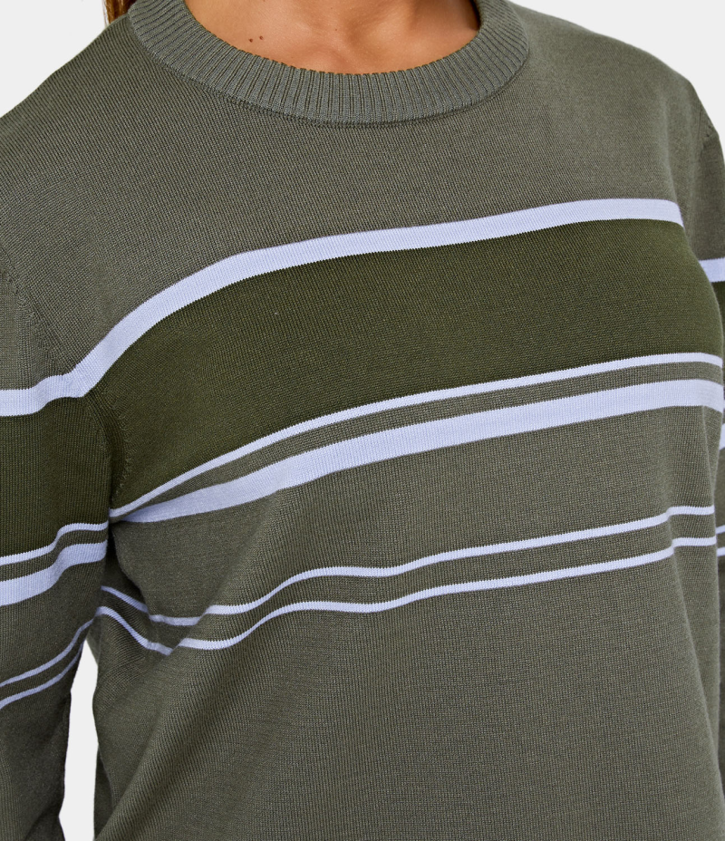 :: Halara Round Neck Color Block Striped Sweater Women's Tops Deep Olive | AKYXZWM-81