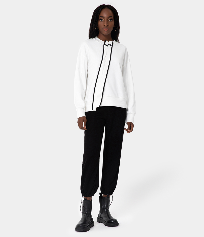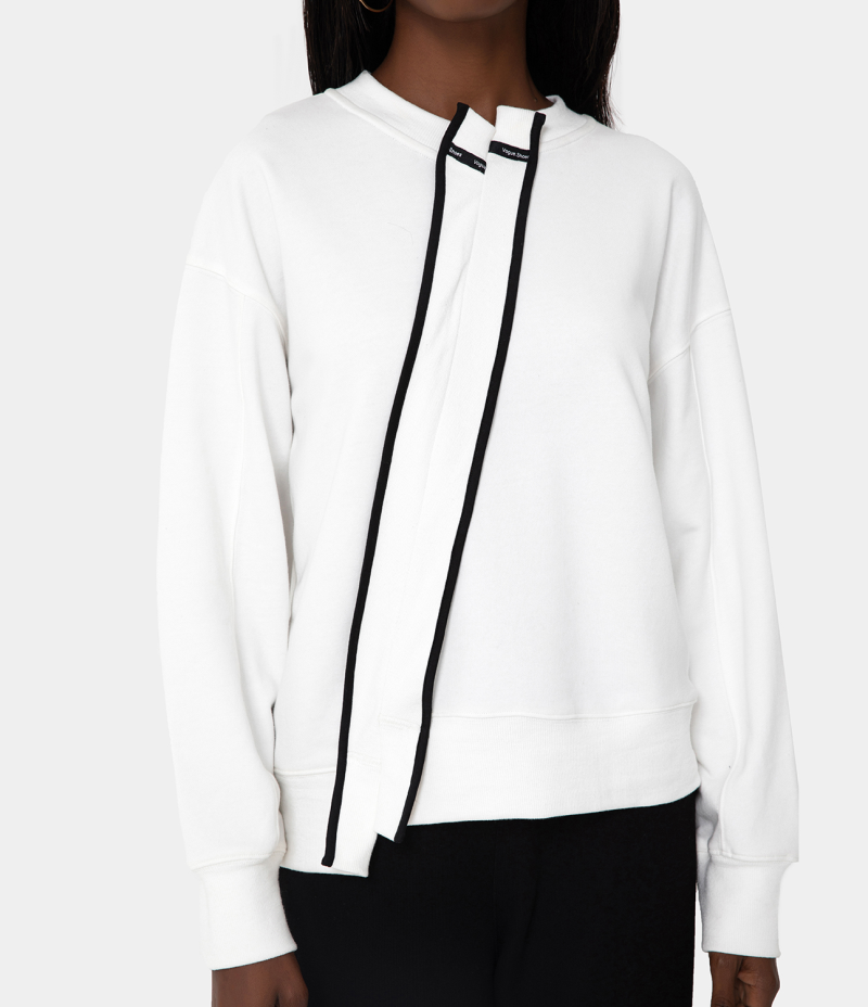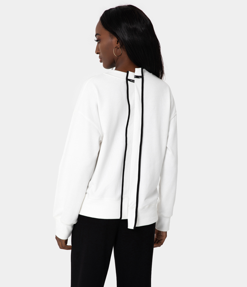 :: Halara Round Neck Color Block Sweatshirt Women's Tops White | YPQZWGT-87