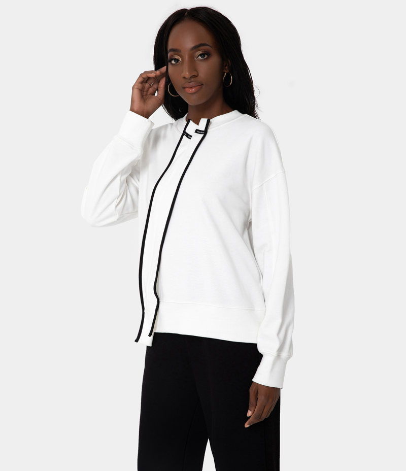 Halara Round Neck Color Block Sweatshirt Women's Tops White | YPQZWGT-87