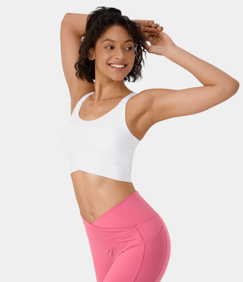 :: Halara Round Neck Crossover Hem Cropped Yoga Tank Women's Tops White | LZACKOV-74