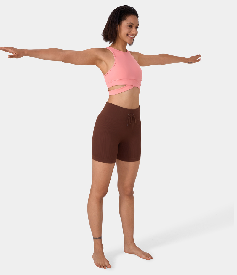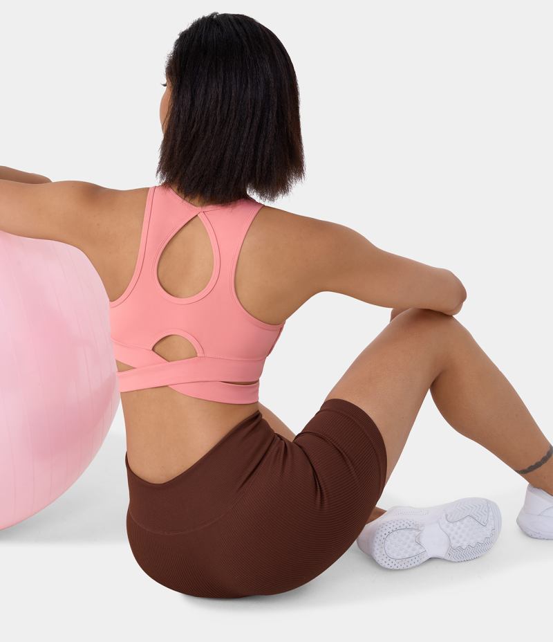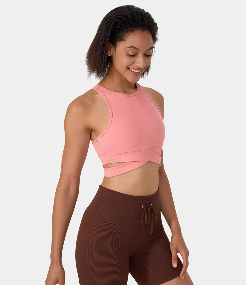 :: Halara Round Neck Crossover Hem Cut Out Cropped Yoga Sports Women's Tops Murex Shell | TYJVRDO-32