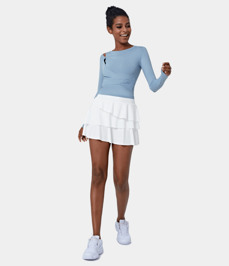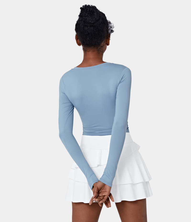 :: Halara Round Neck Crossover Plain Sports Women's Tops Light Baby Blue | VBJSXTW-65