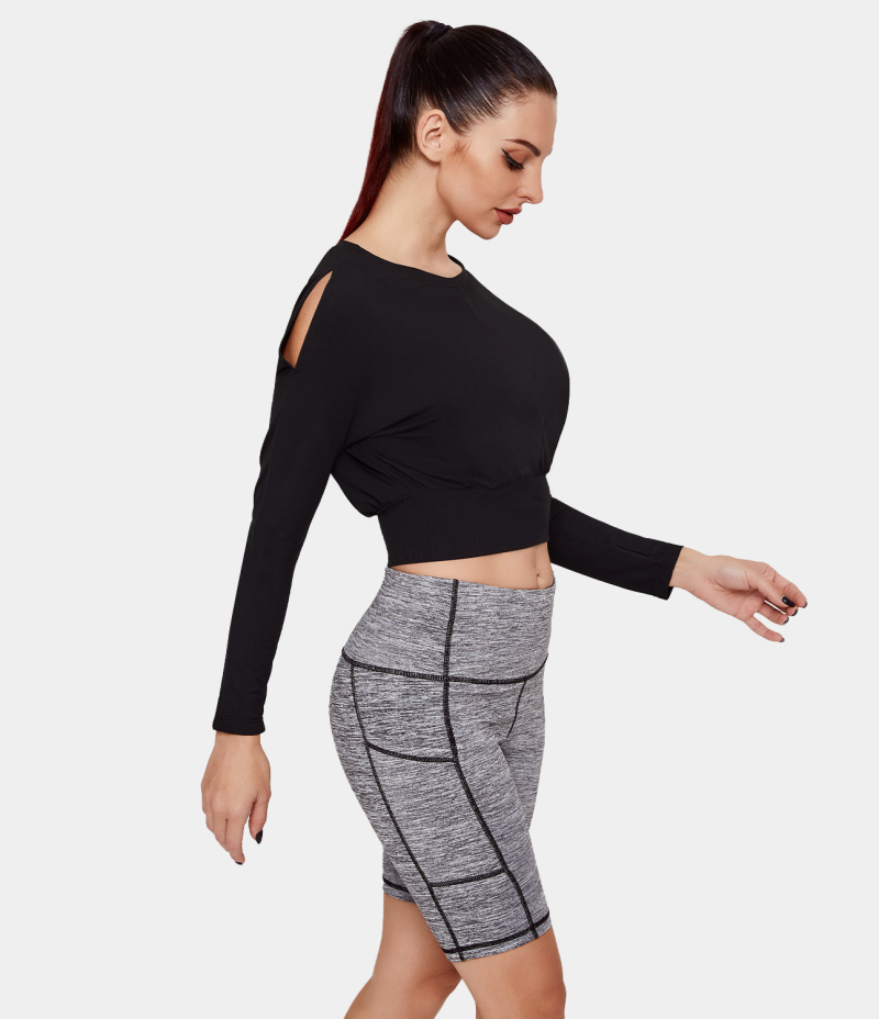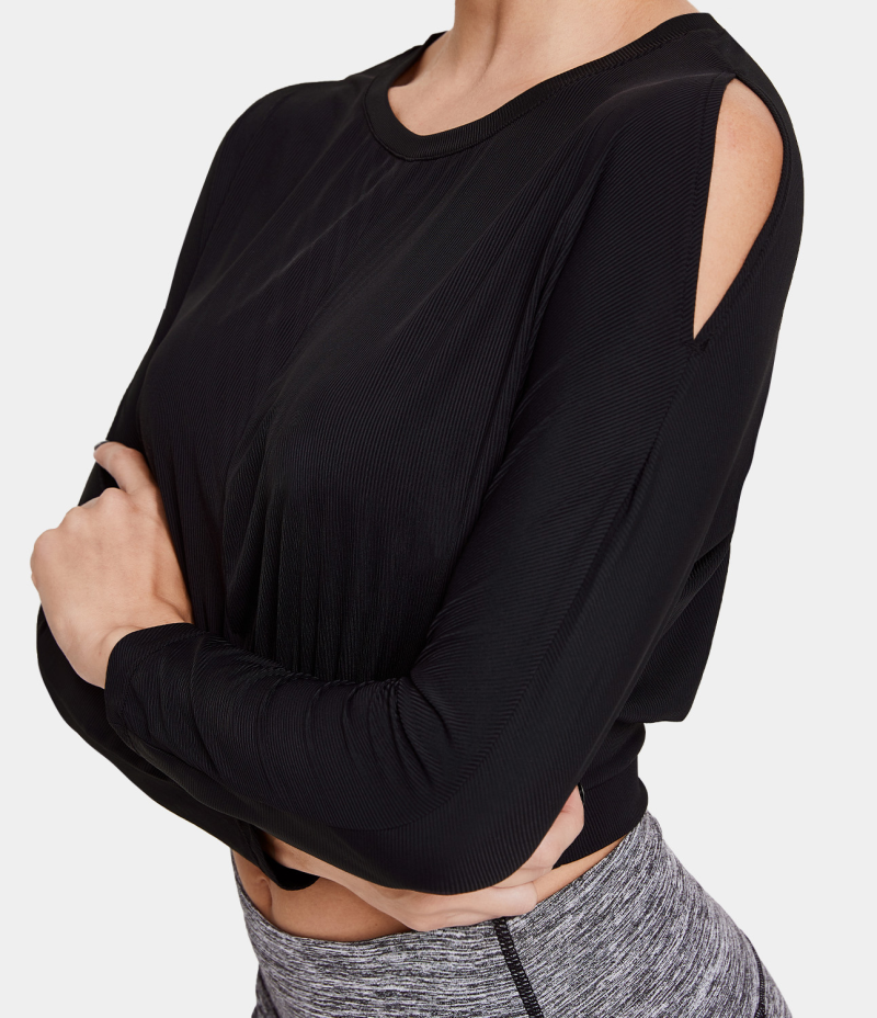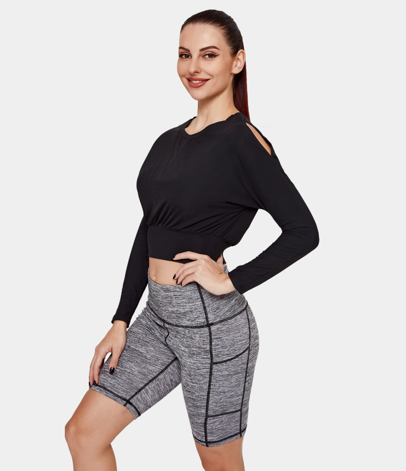 :: Halara Round Neck Cut Out Plain Cropped Sports Women's Tops Black | SODXAUH-05