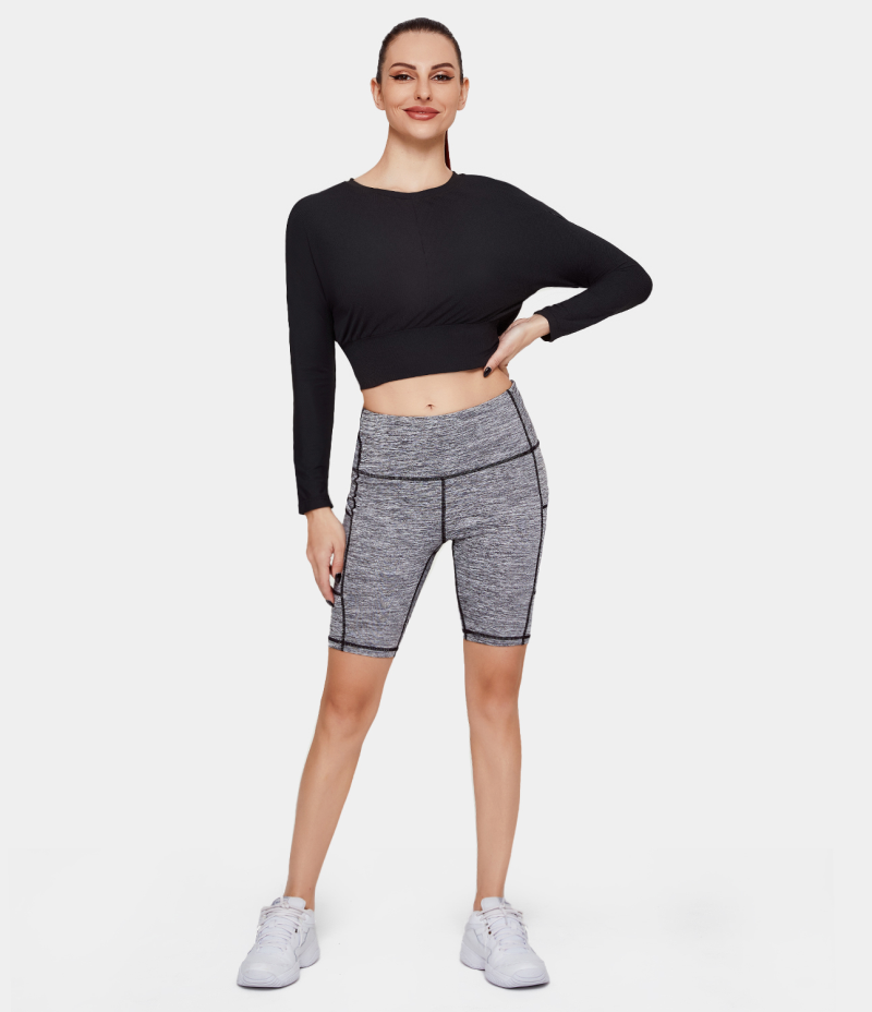 Halara Round Neck Cut Out Plain Cropped Sports Women's Tops Black | SODXAUH-05