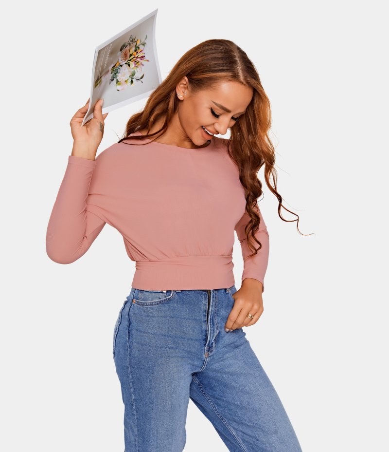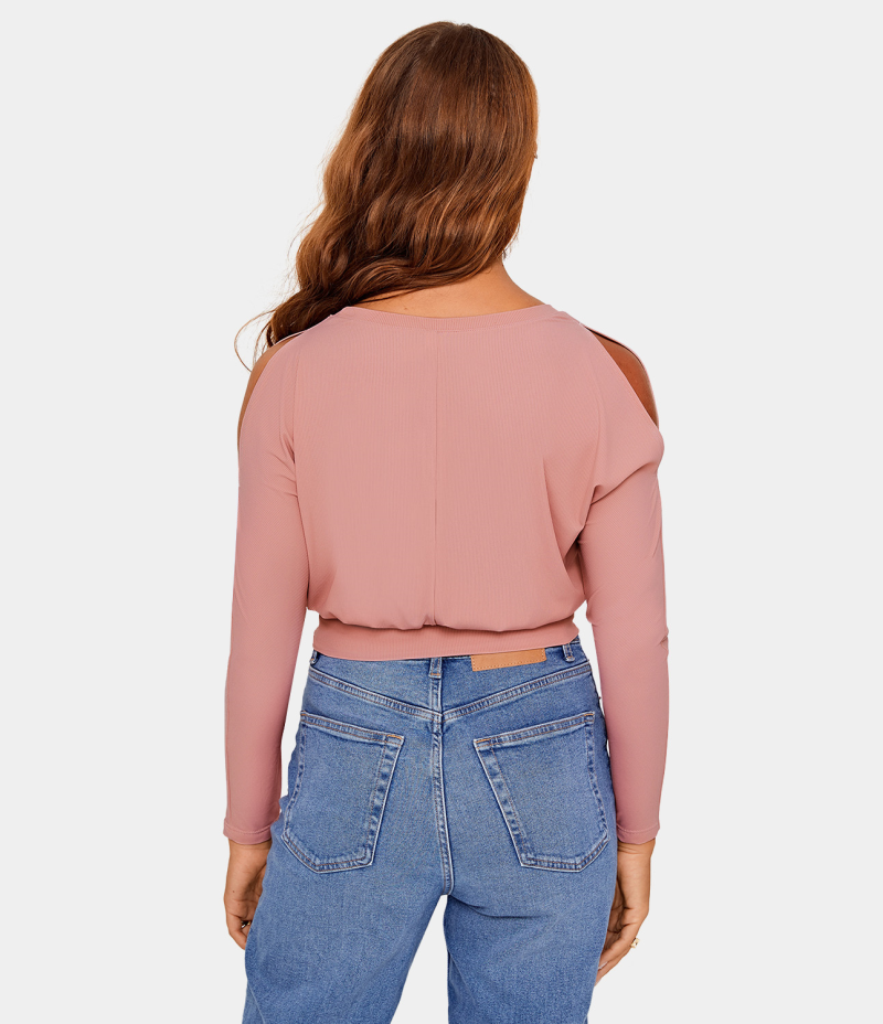 :: Halara Round Neck Cut Out Plain Cropped Sports Women's Tops Putty Pink | ROQKXHE-27