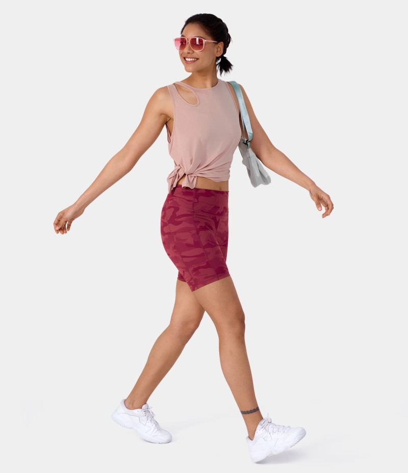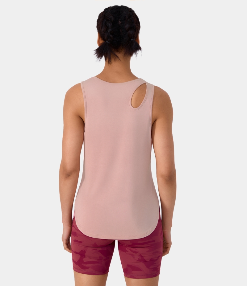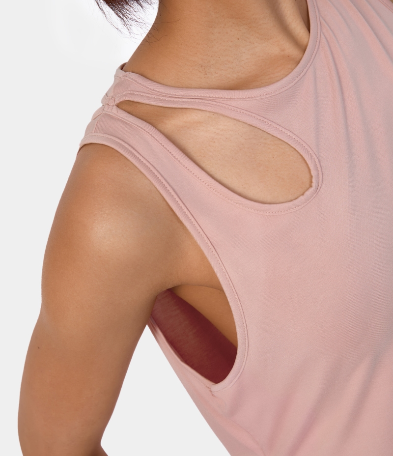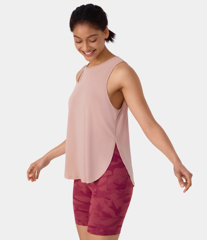 :: Halara Round Neck Cut Out Split Hem Yoga Sports Women's Tops Mauve Morn | PALJIVM-43