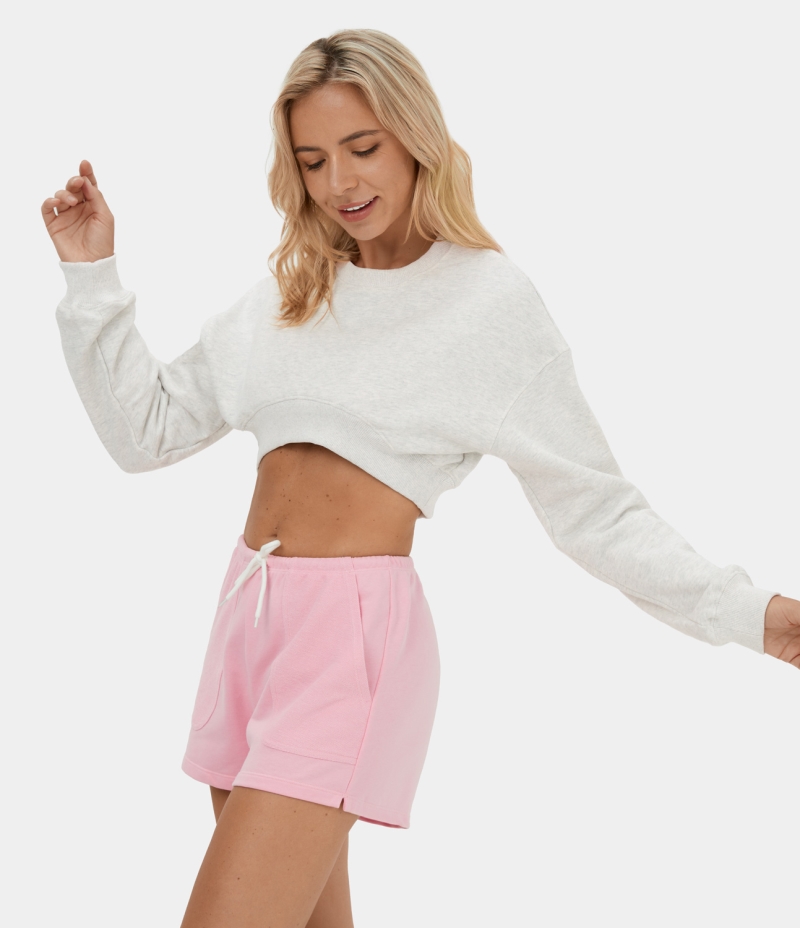 Halara Round Neck Dropped Shoulder Cropped Casual Sweatshirt Women's Tops Porcelain White | ZBPEDLU-43