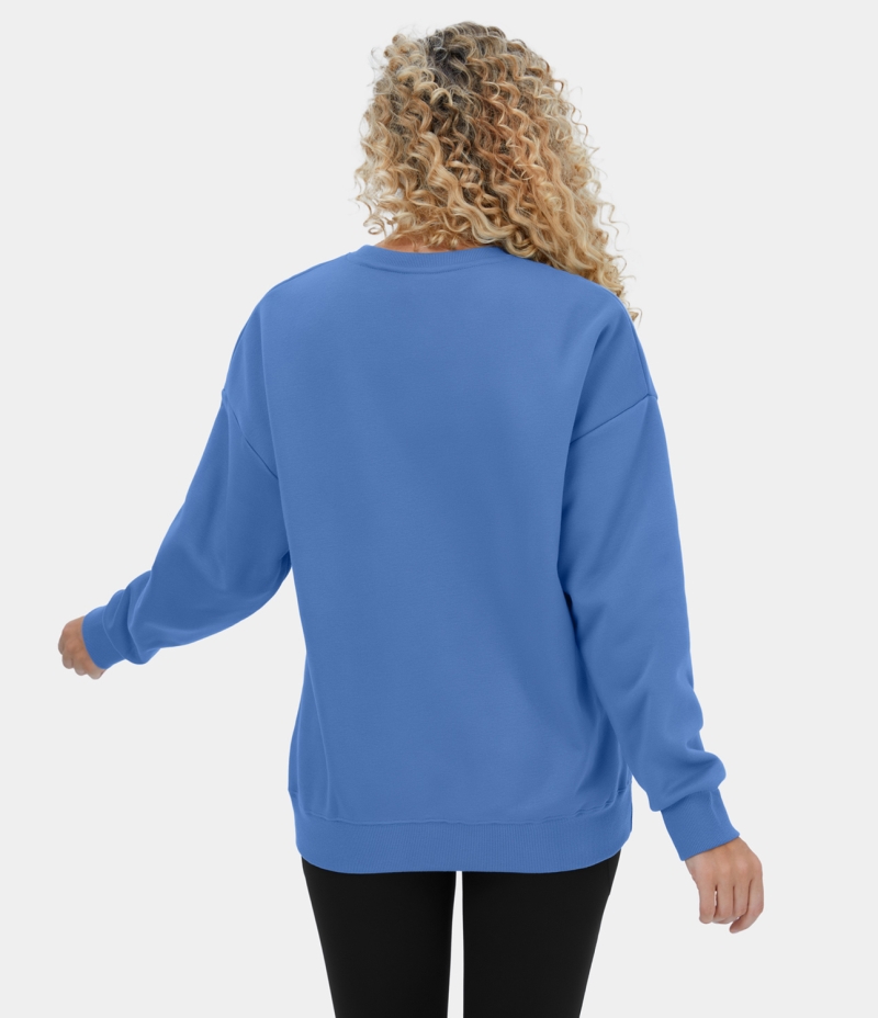 :: Halara Round Neck Dropped Shoulder Fleece Casual Sports Sweatshirt Women's Tops Ultramarine | AGJVSBI-50