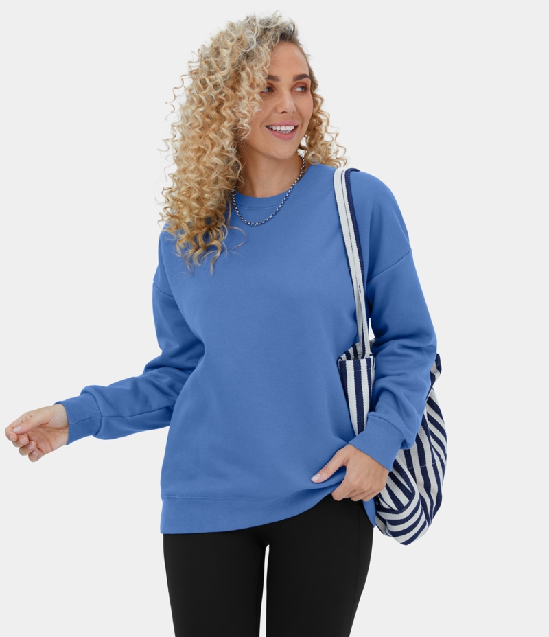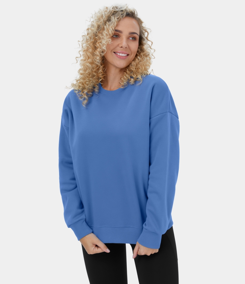 Halara Round Neck Dropped Shoulder Fleece Casual Sports Sweatshirt Women's Tops Ultramarine | AGJVSBI-50