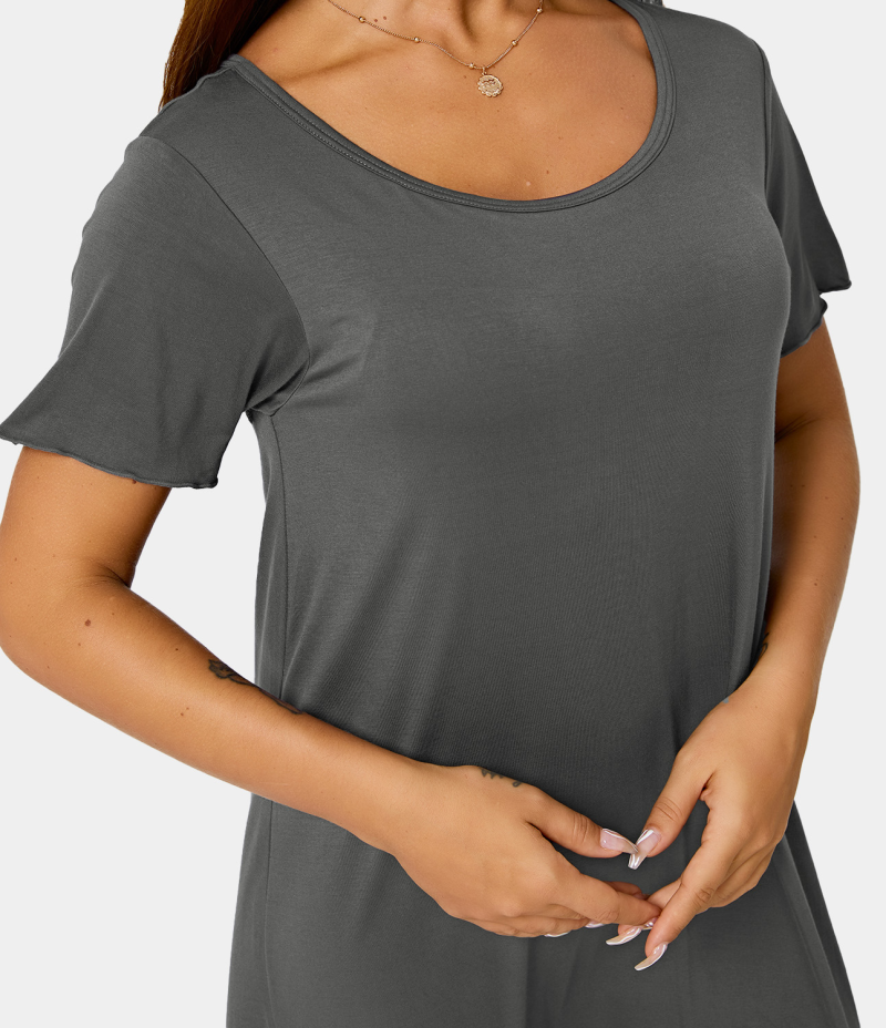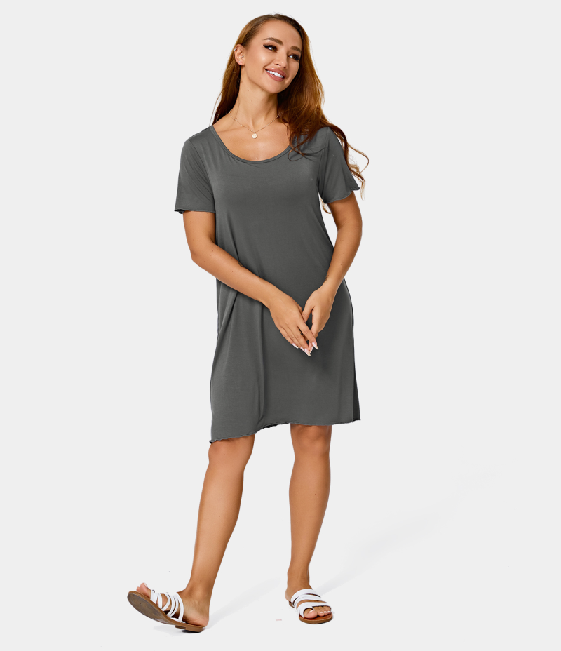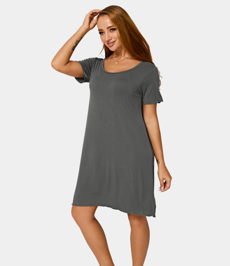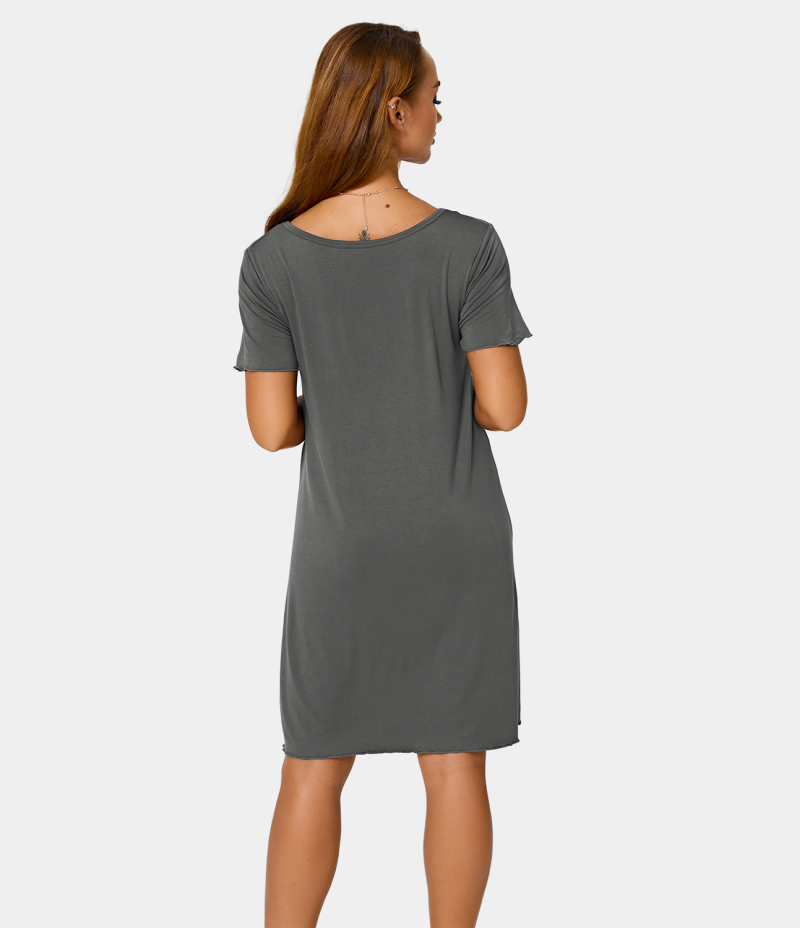 :: Halara Round Neck Frill Trim Plain Lounge Women's Dress Lead Grey | 793852-MKY