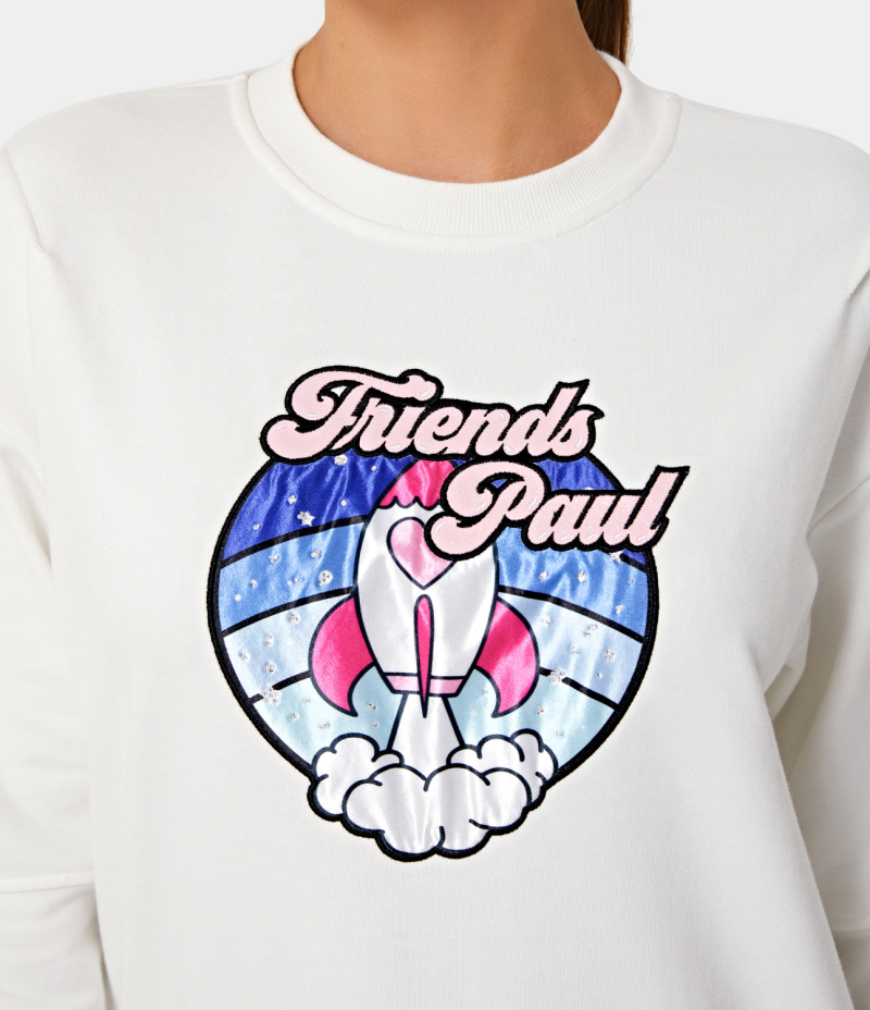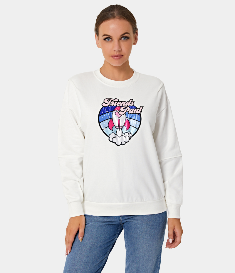 :: Halara Round Neck Graphic Print Sweatshirt Women's Tops White | IJSLCAD-05