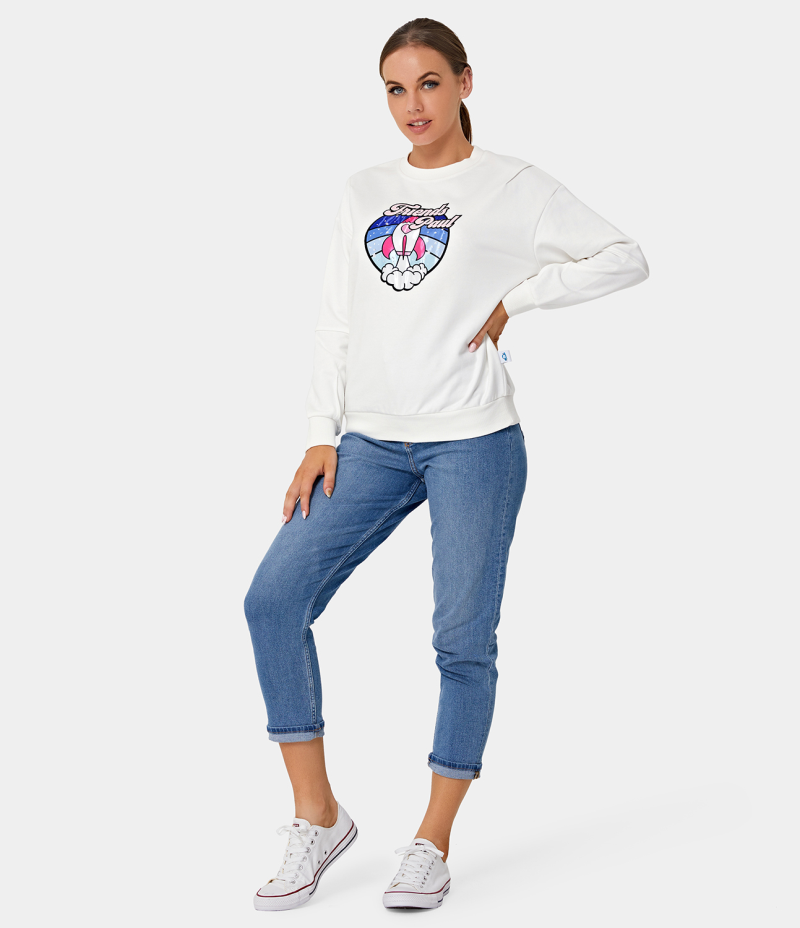 Halara Round Neck Graphic Print Sweatshirt Women's Tops White | IJSLCAD-05