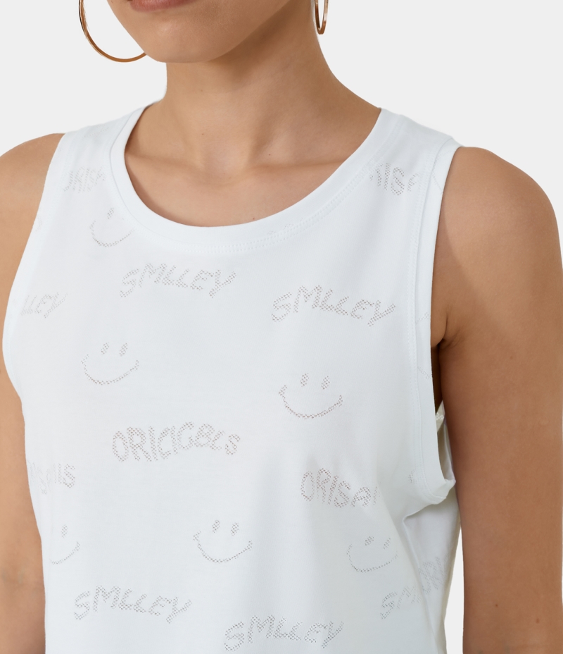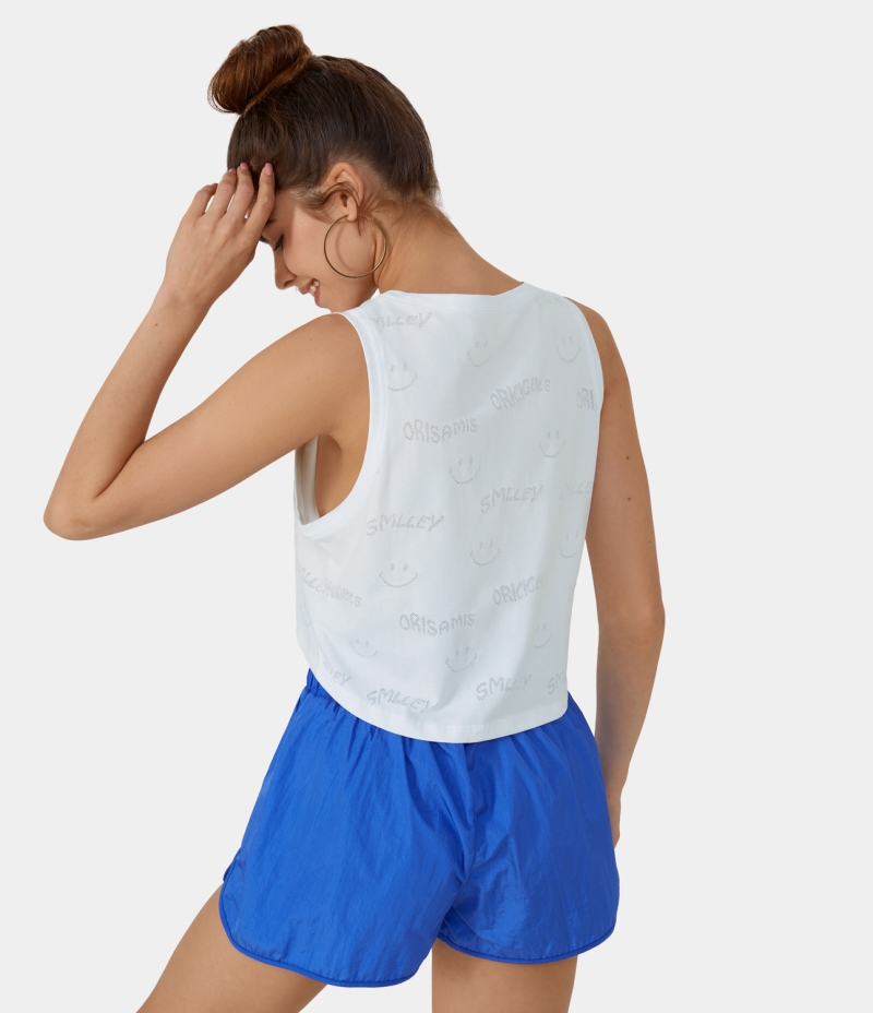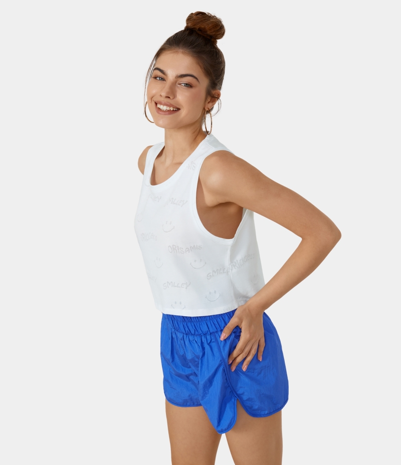 :: Halara Round Neck Jacquard Cropped Yoga Tank Women's Tops White | MRFTZIB-03