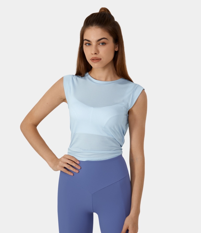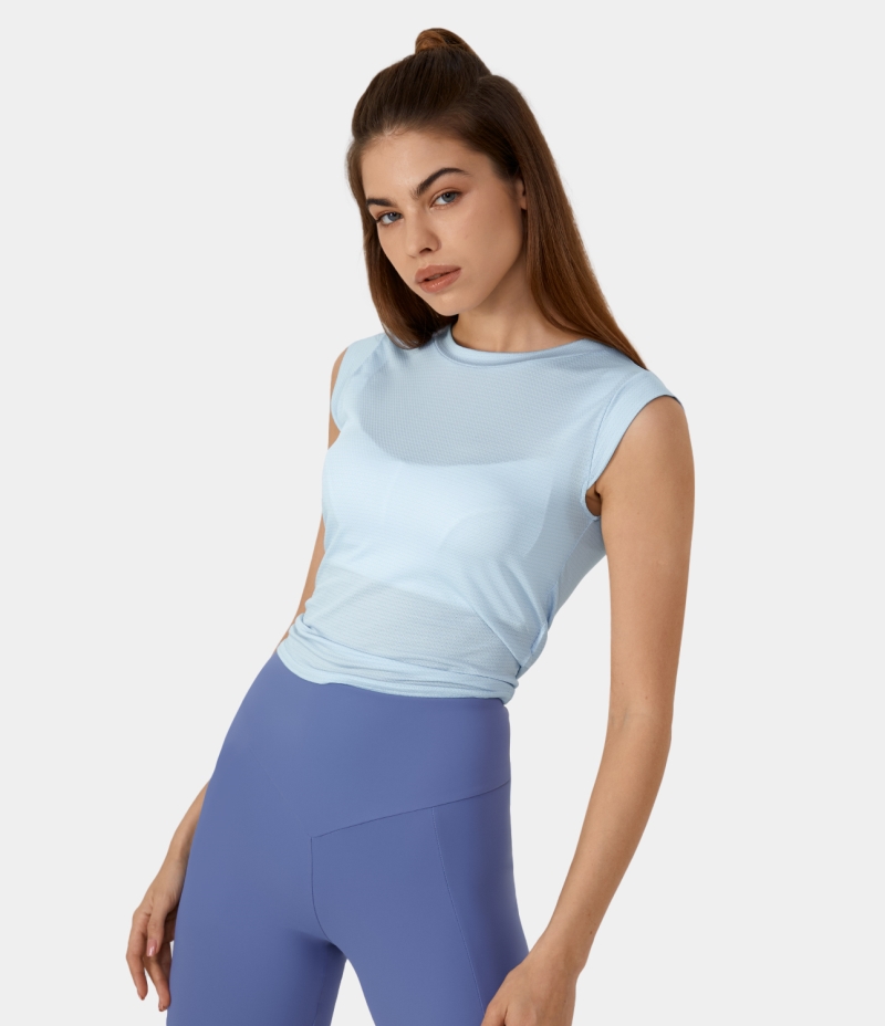 Halara Round Neck Lace Up Cut Out Barre Ballet Dance Sports Women's Tops Country Air | HAOLVBZ-67