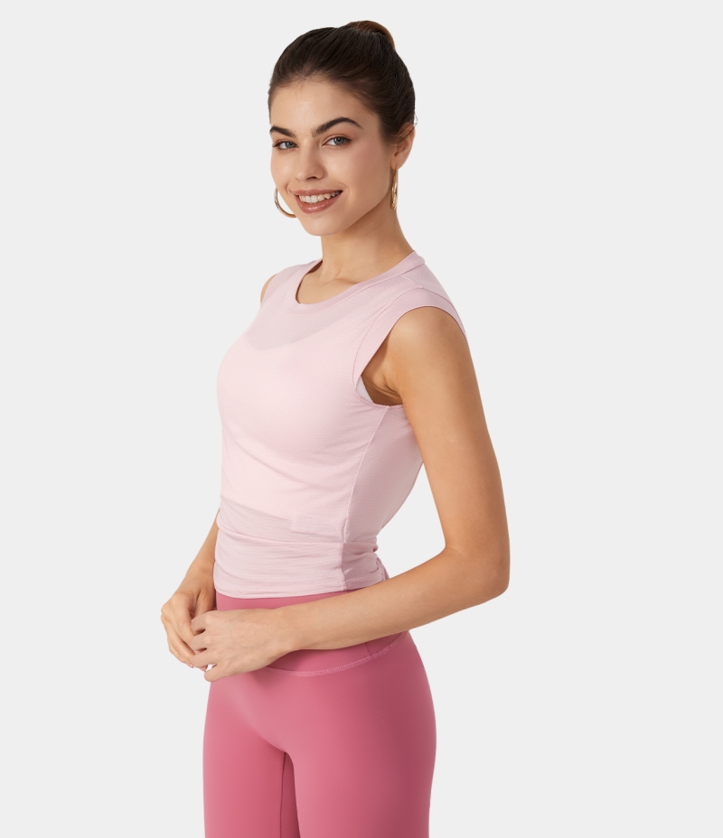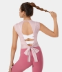Halara Round Neck Lace Up Cut Out Barre Ballet Dance Sports Women's Tops Mauve Morn | GUDRBSP-05