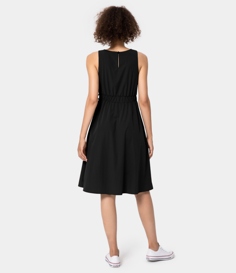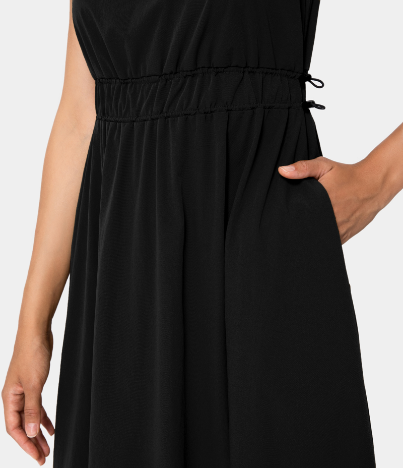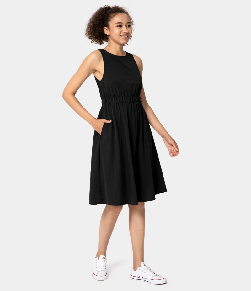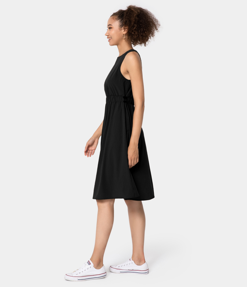 :: Halara Round Neck Mid Rise Sleeveless Cut Out Drawstring Women's Dress Black | 601892-MJX