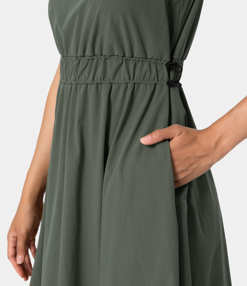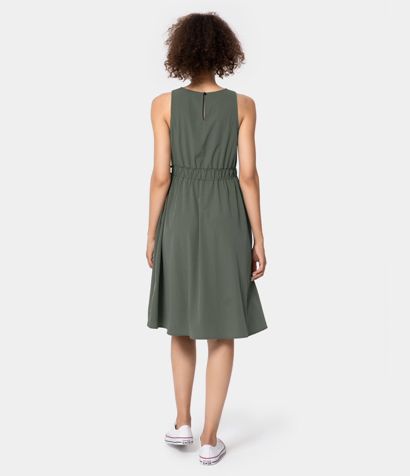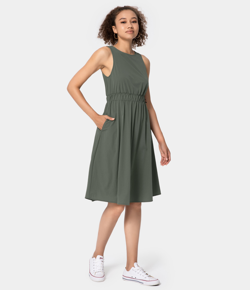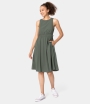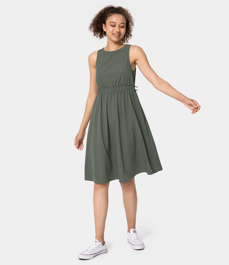 :: Halara Round Neck Mid Rise Sleeveless Cut Out Drawstring Women's Dress Deep Sage | 471036-BJS
