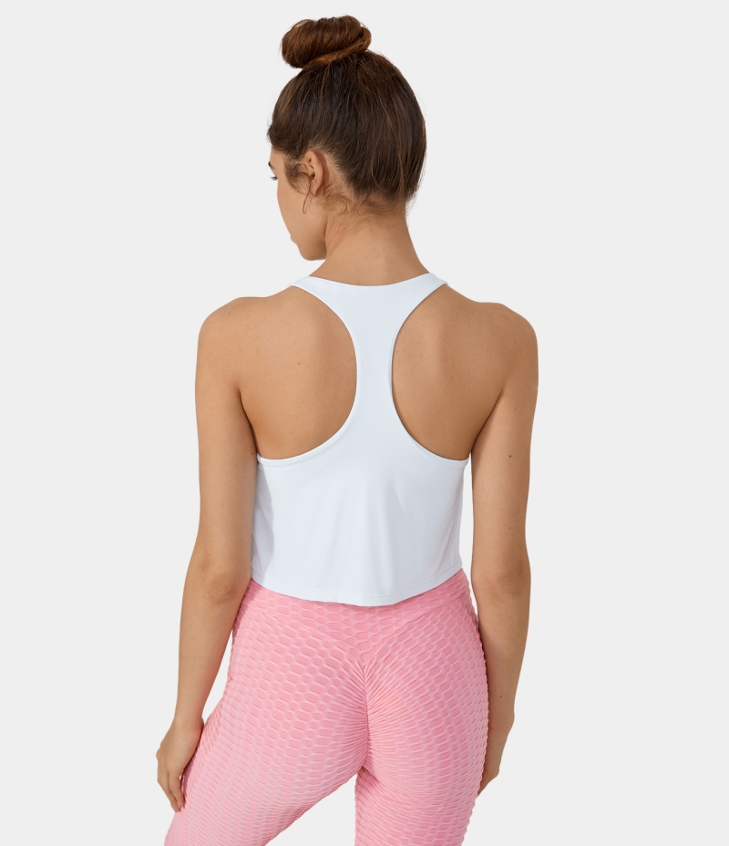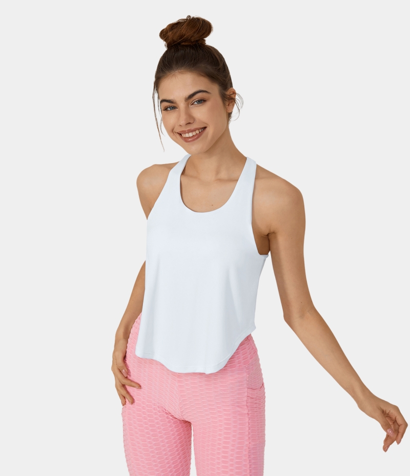 Halara Round Neck Racerback Tie Up Cropped Yoga Tank Women's Tops White | WKTZDOH-75