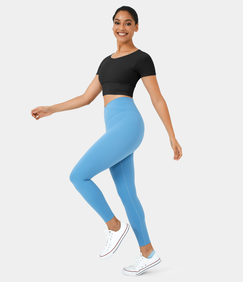 Halara Round Neck Short Sleeve Crisscross Cropped Sports Women's Tops Black | CBZMYOX-31
