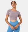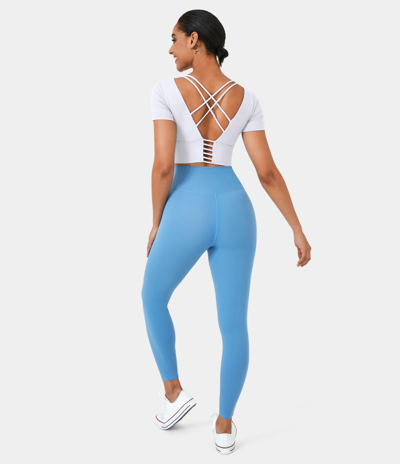Halara Round Neck Short Sleeve Crisscross Cropped Sports Women's Tops White | OGICNSH-46