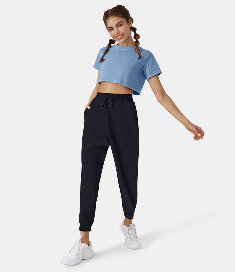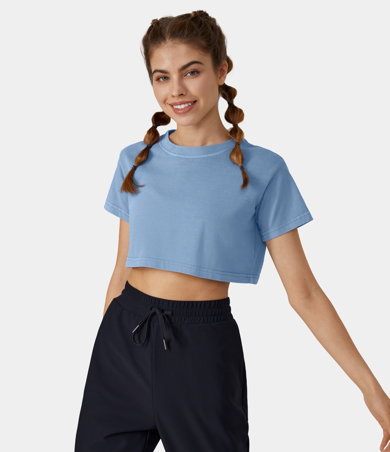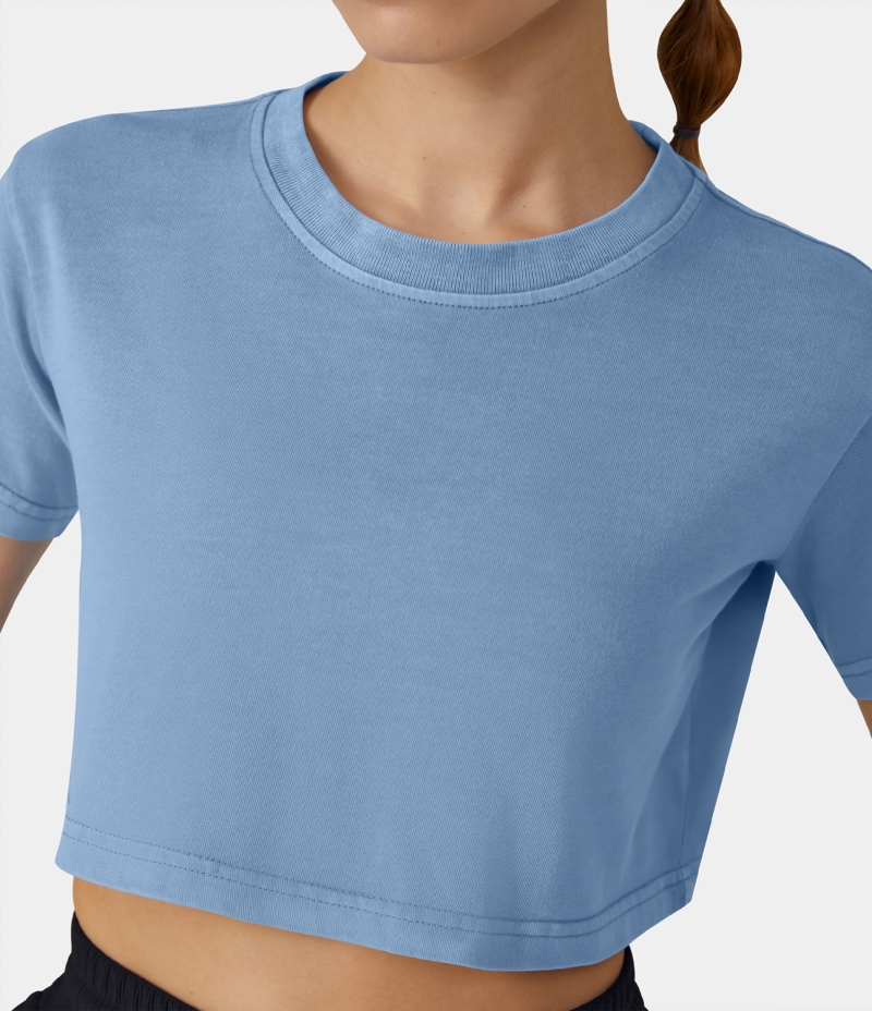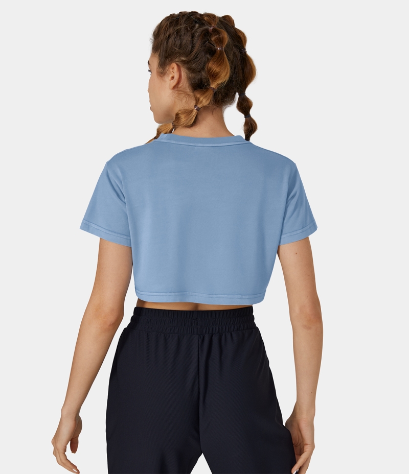 Halara Round Neck Short Sleeve Cropped Relaxed T-Shirt Women's Tops Frozen Fjord | CNYXBUP-76