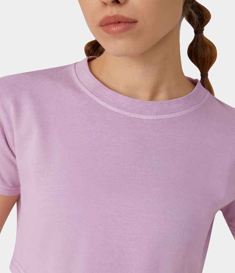 :: Halara Round Neck Short Sleeve Cropped Relaxed T-Shirt Women's Tops Winsome Orchid | YZOCFXM-94