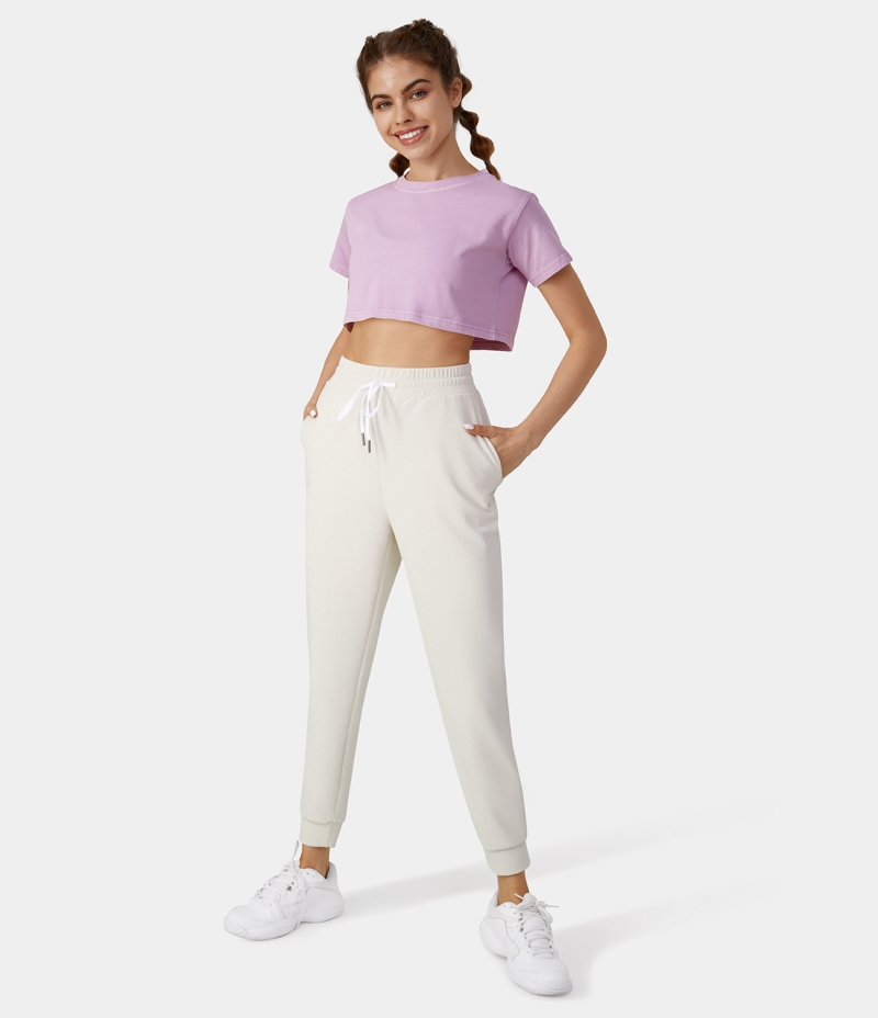 Halara Round Neck Short Sleeve Cropped Relaxed T-Shirt Women's Tops Winsome Orchid | YZOCFXM-94