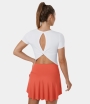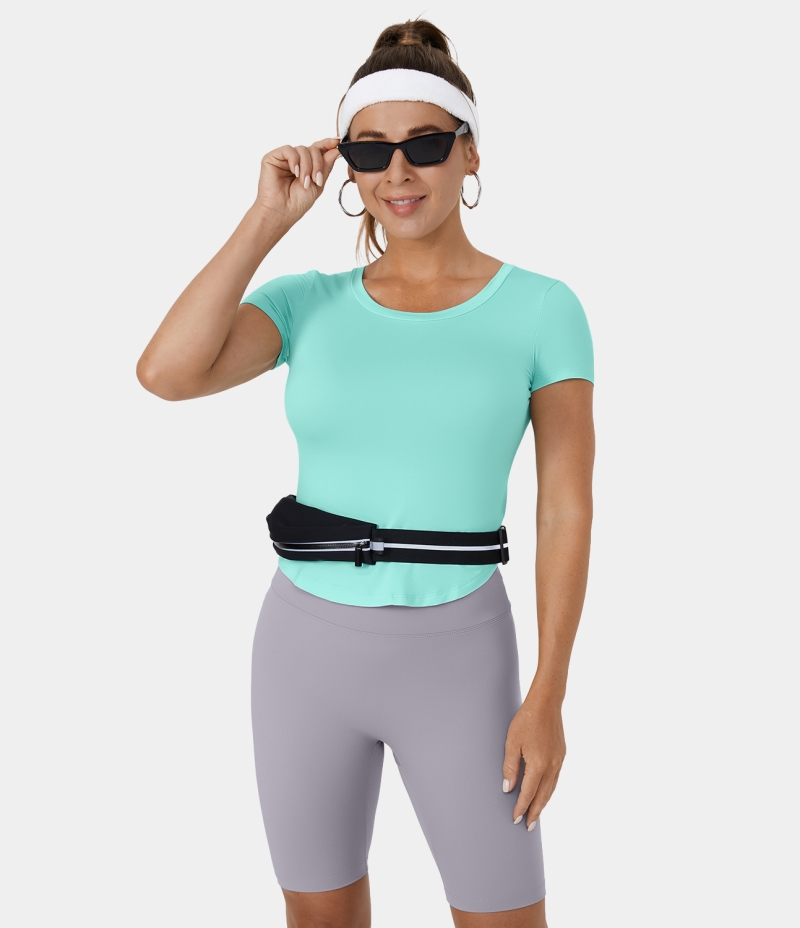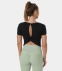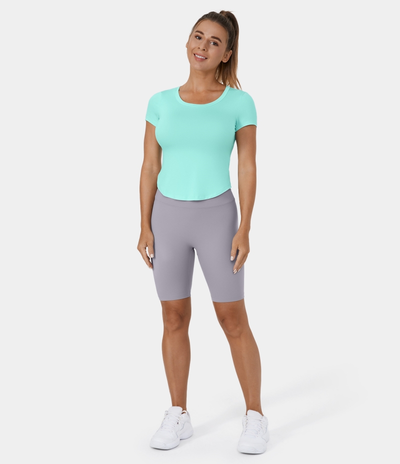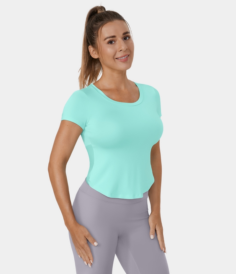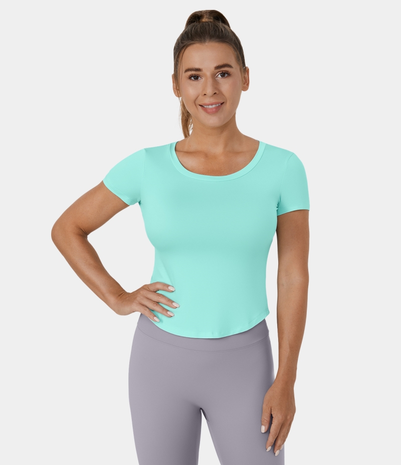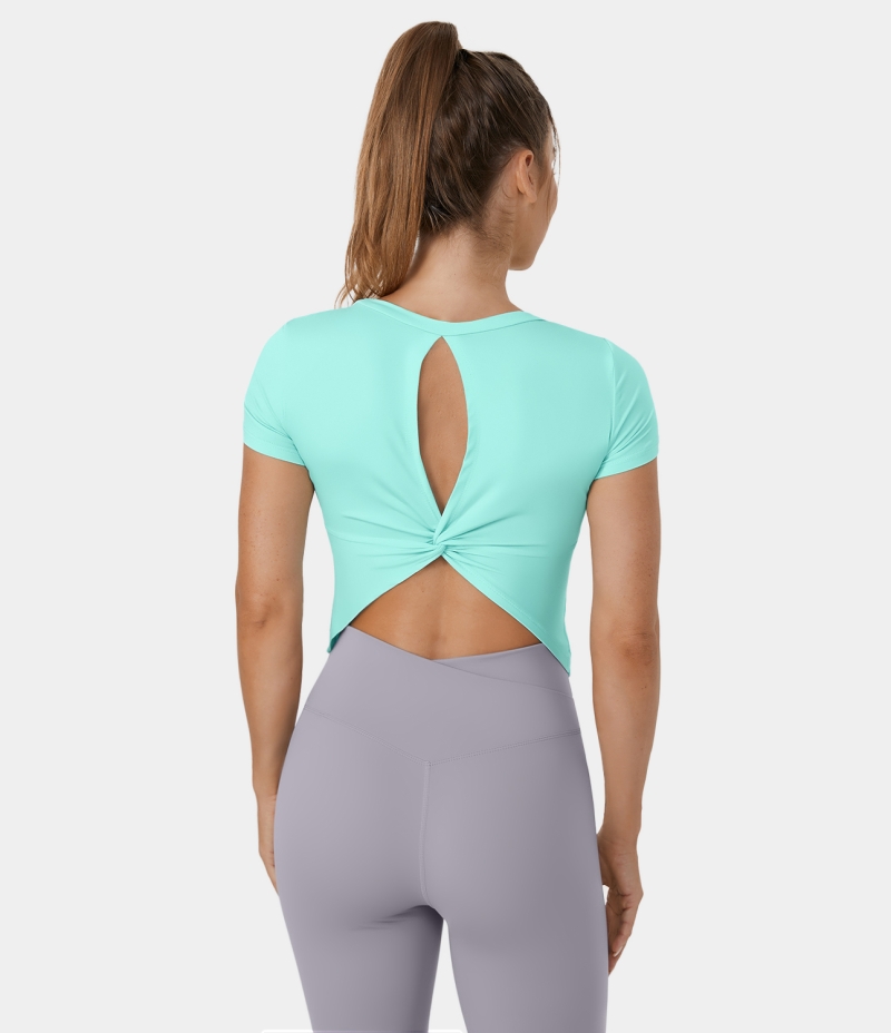 :: Halara Round Neck Short Sleeve Twisted Cut Out Cropped Barre Ballet Dance Sports Women's Tops Blue Light | ZDIVWEN-51