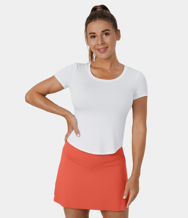 :: Halara Round Neck Short Sleeve Twisted Cut Out Cropped Barre Ballet Dance Sports Women's Tops White | YVUAINR-70