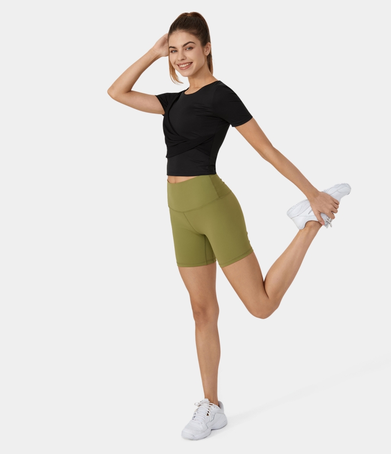 Halara Round Neck Short Sleeve Twisted Yoga Sports Women's Tops Black | QZCMNTW-47