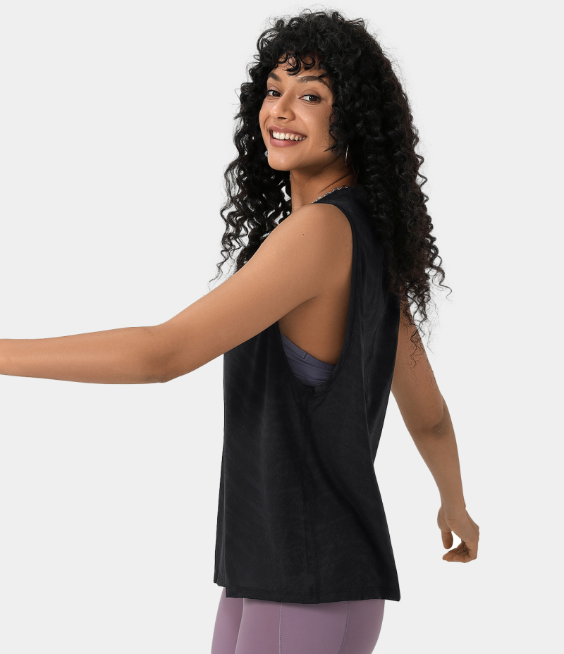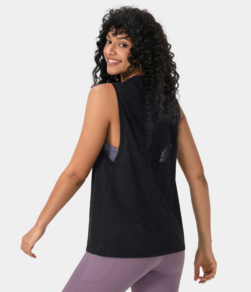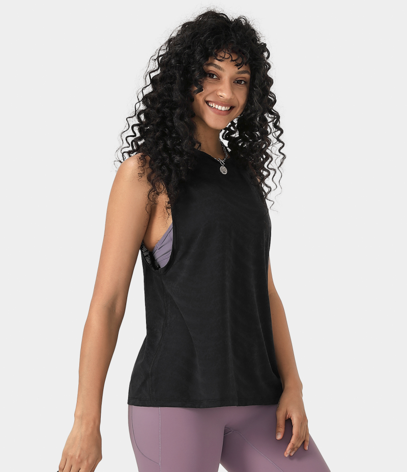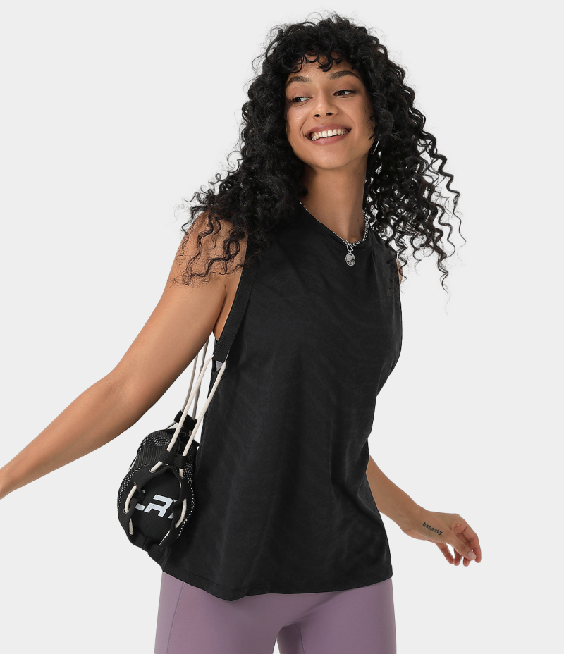 :: Halara Round Neck Sleeveless Jacquard Plain Sports Women's Tops Black | VUTSNYQ-48