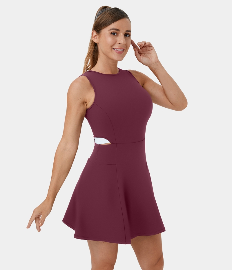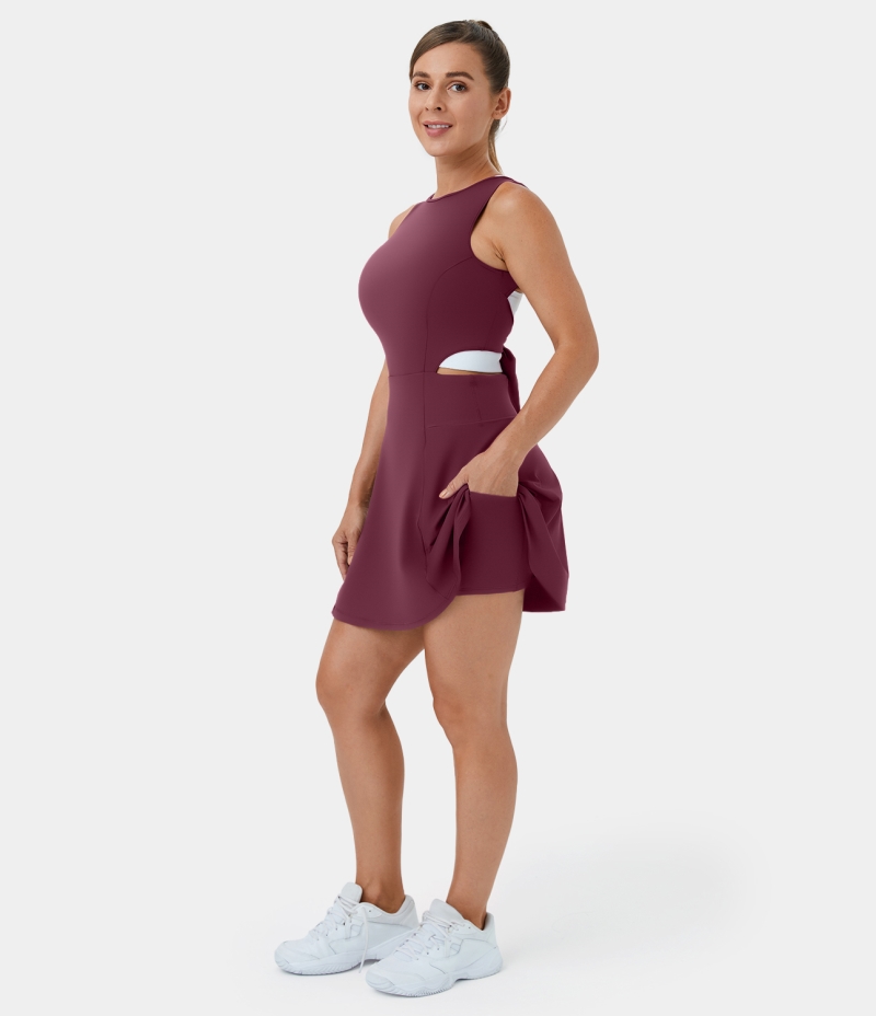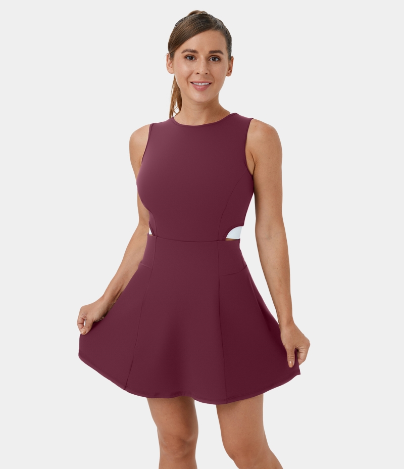Halara Round Neck Sleeveless Tie Back Cut Out 2-in-1 Backless Women's Dress New Maroon | 984631-YTZ