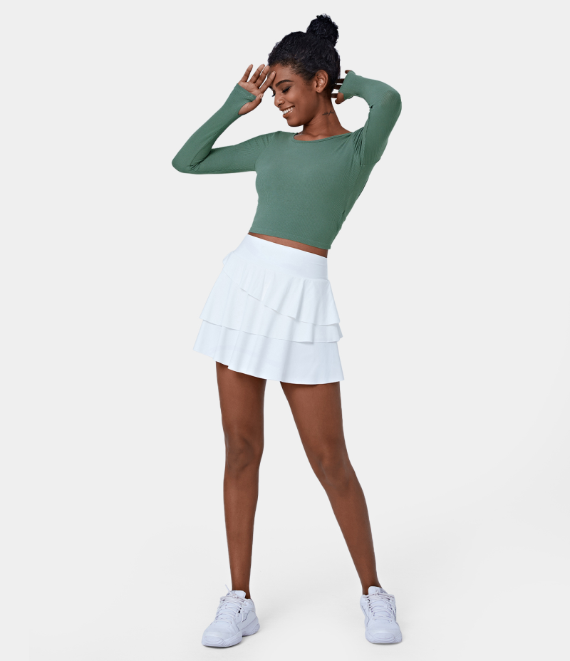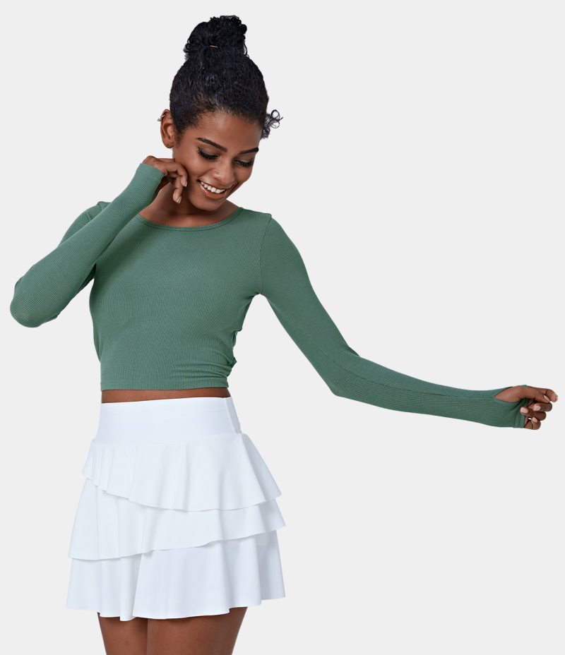 :: Halara Round Neck Thumb Hole Backless Crisscross Twisted Cropped Sports Women's Tops Viridian | WHMTZIS-60