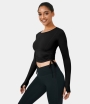 Halara Round Neck Thumb Hole Side Drawstring Ruched Cropped Sports Women's Tops Lilac Pink | CINVAPR-83