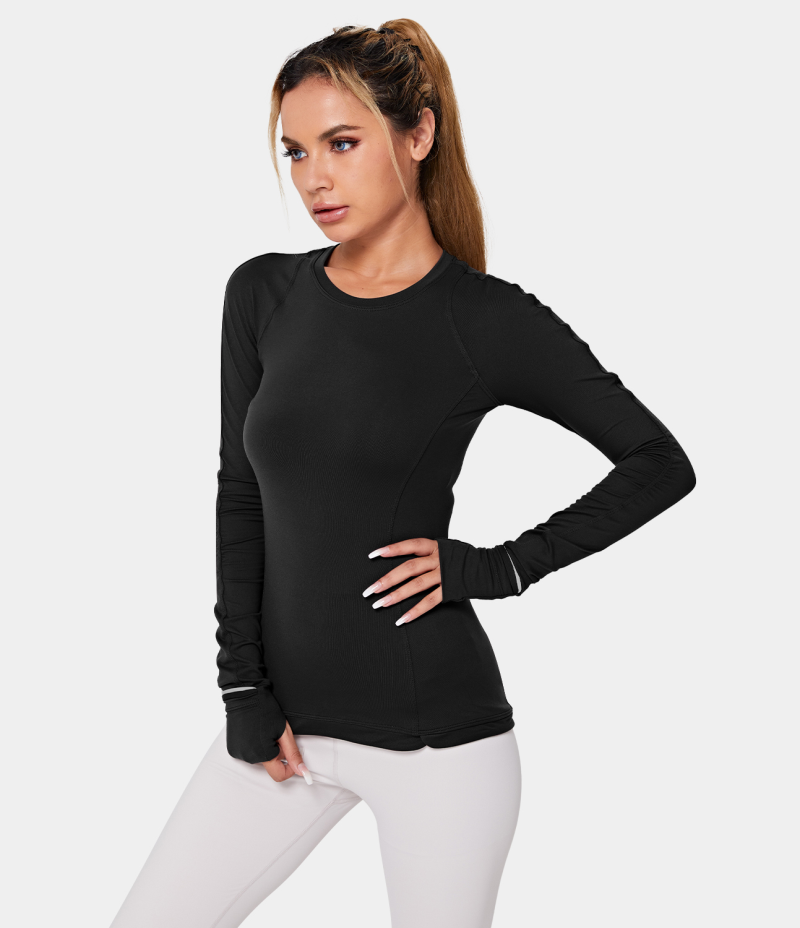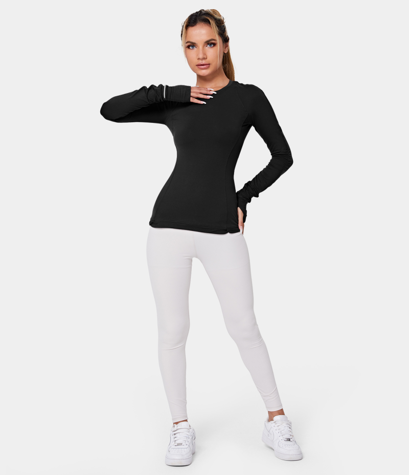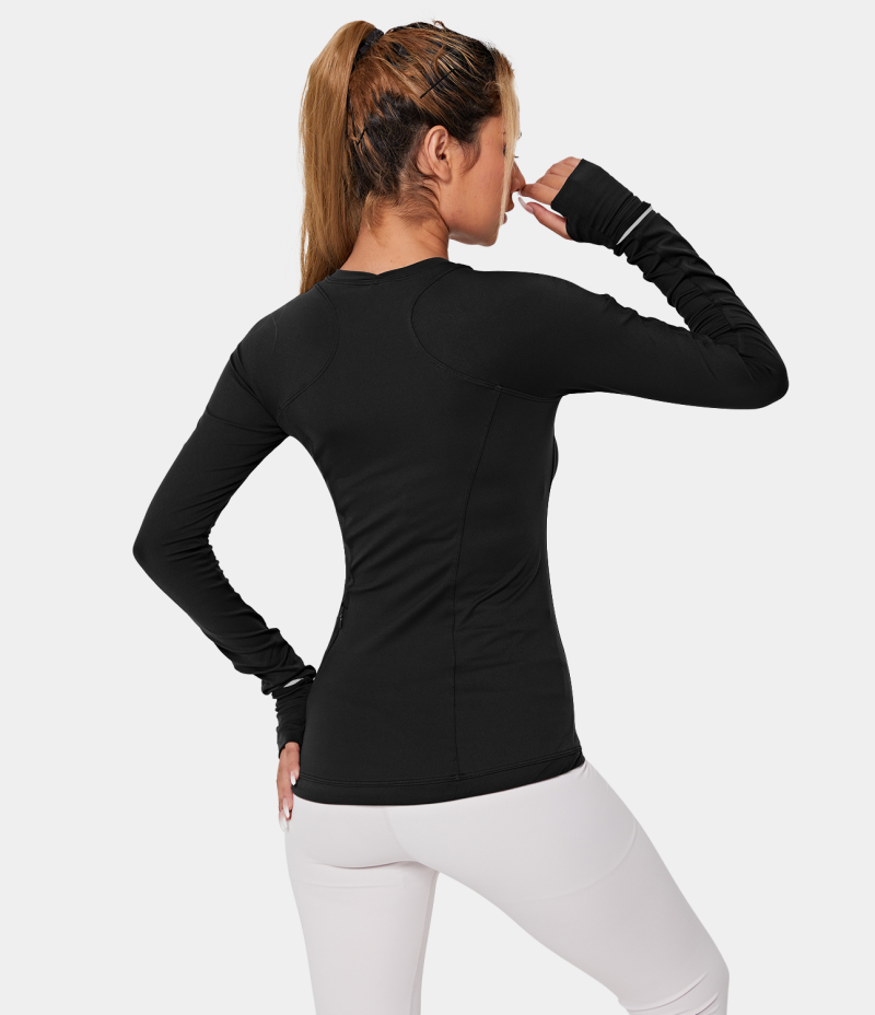 :: Halara Round Neck Thumb Hole Zip Pocket Sports Women's Tops Black | NAEGFJI-98