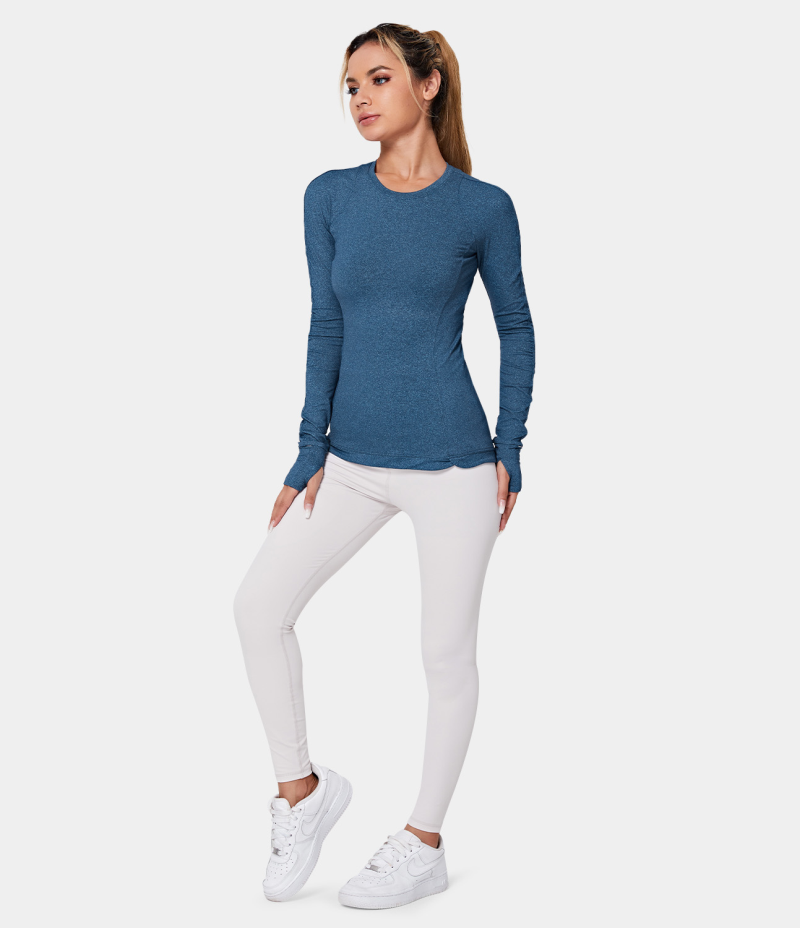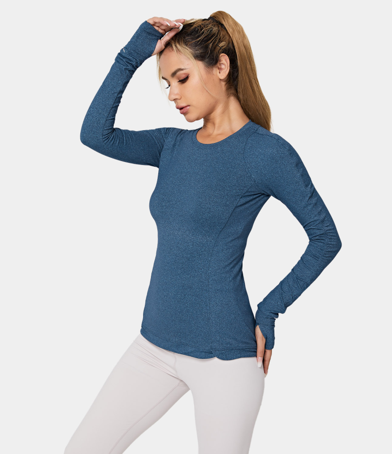 Halara Round Neck Thumb Hole Zip Pocket Sports Women's Tops Grey Blue | KWEZIQO-36