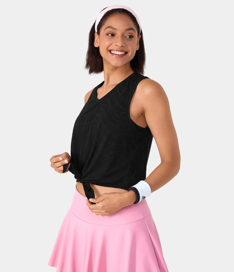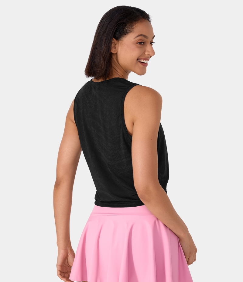 :: Halara Round Neck Tie Front Barre Ballet Dance Tank Women's Tops Black | WXYMDQV-42